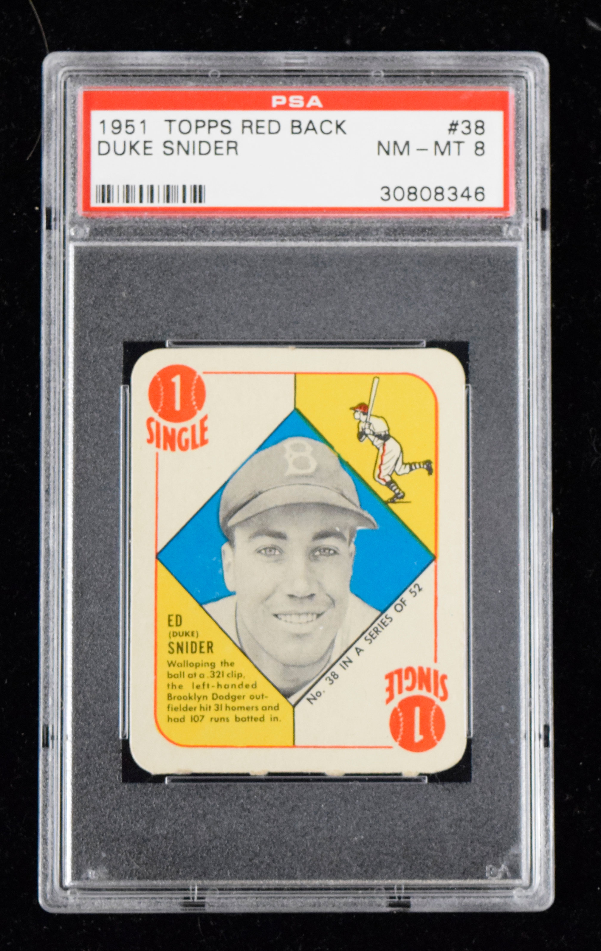 1951 Topps Red Back #38 Duke Snider graded PSA 8 (NM/MT).