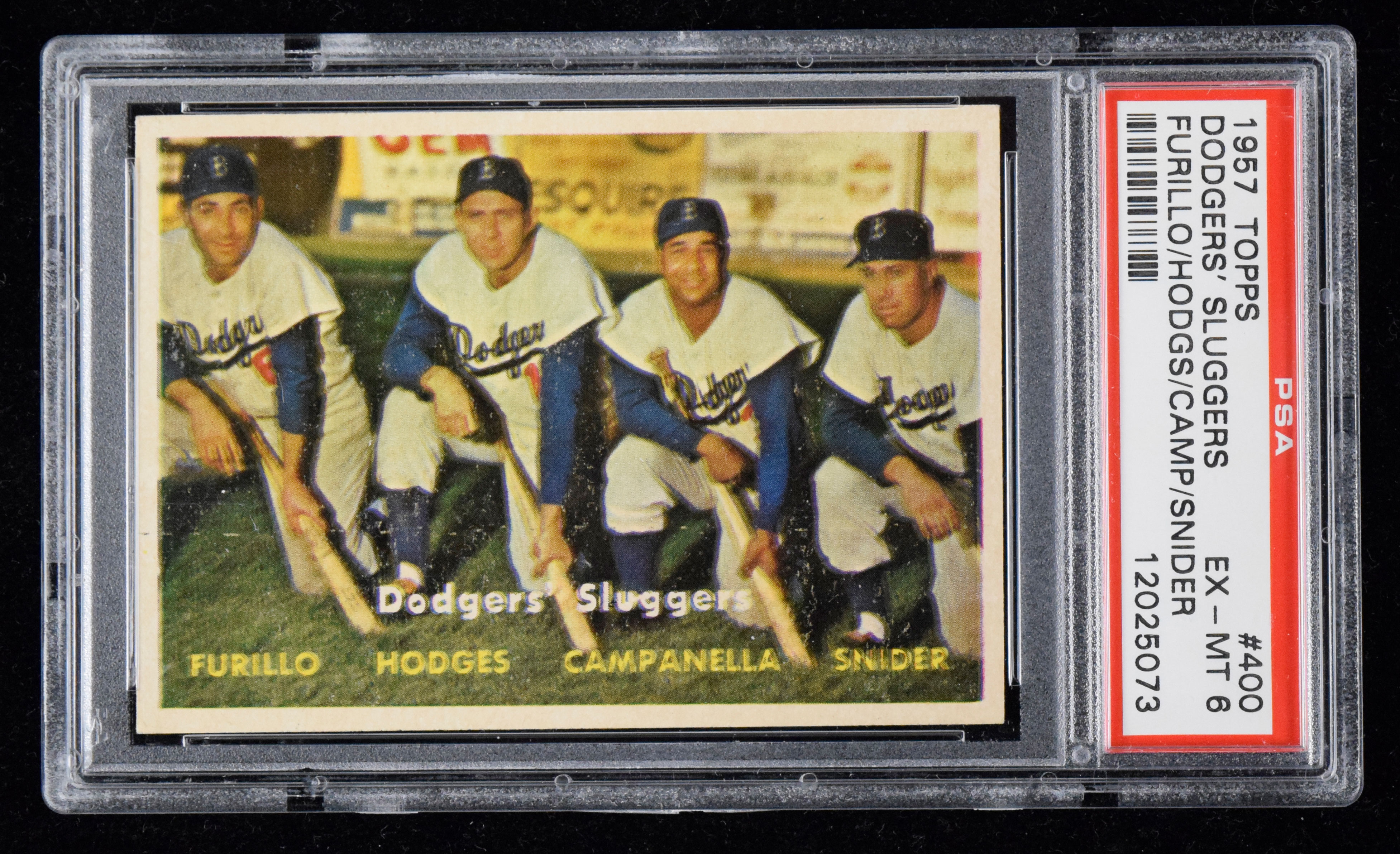 1957 Topps #400 Dodgers Sluggers graded PSA 6 (EX/MT).