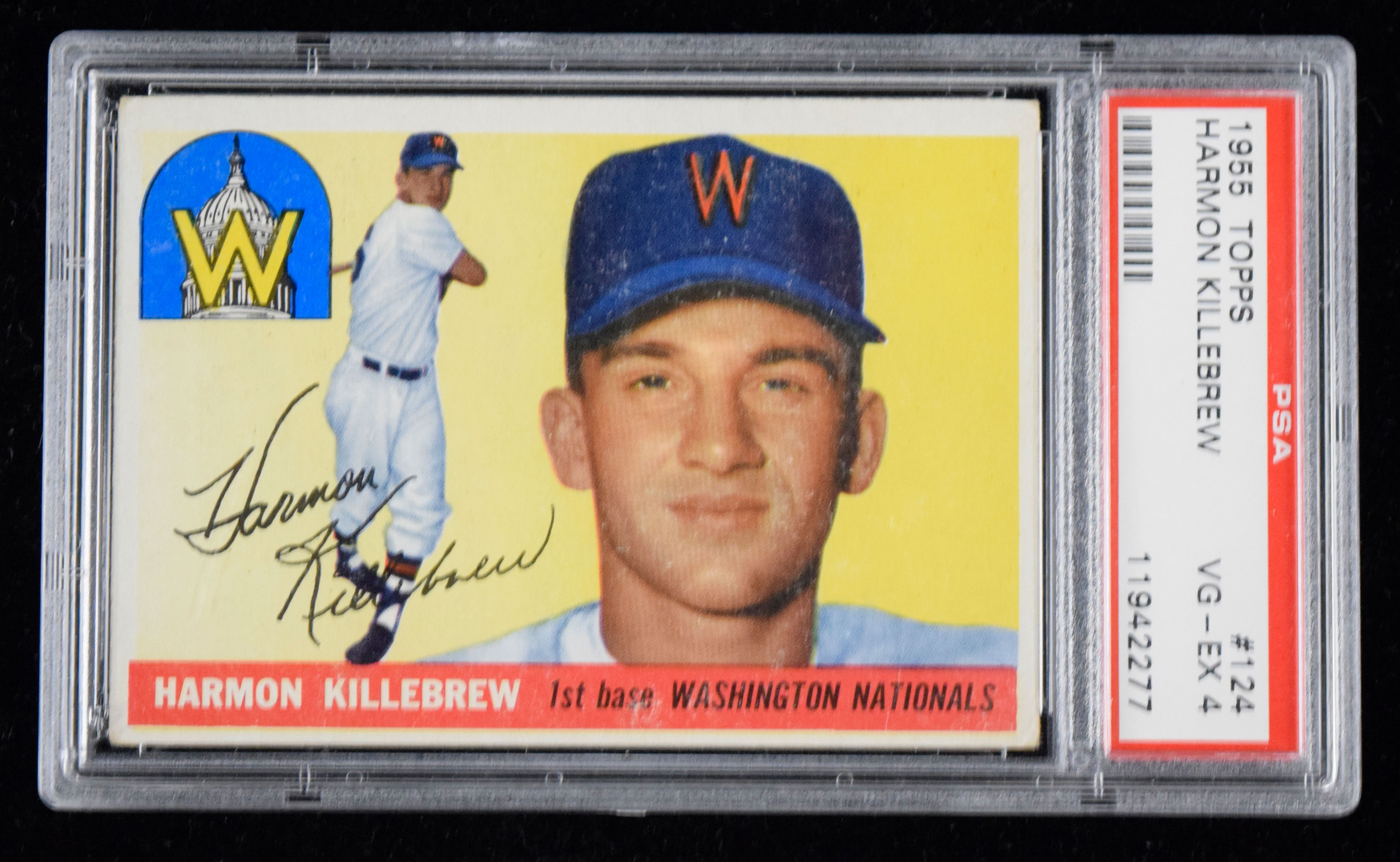1955 Topps #124 Harmon Killebrew rookie card graded PSA 4 (VG/EX).