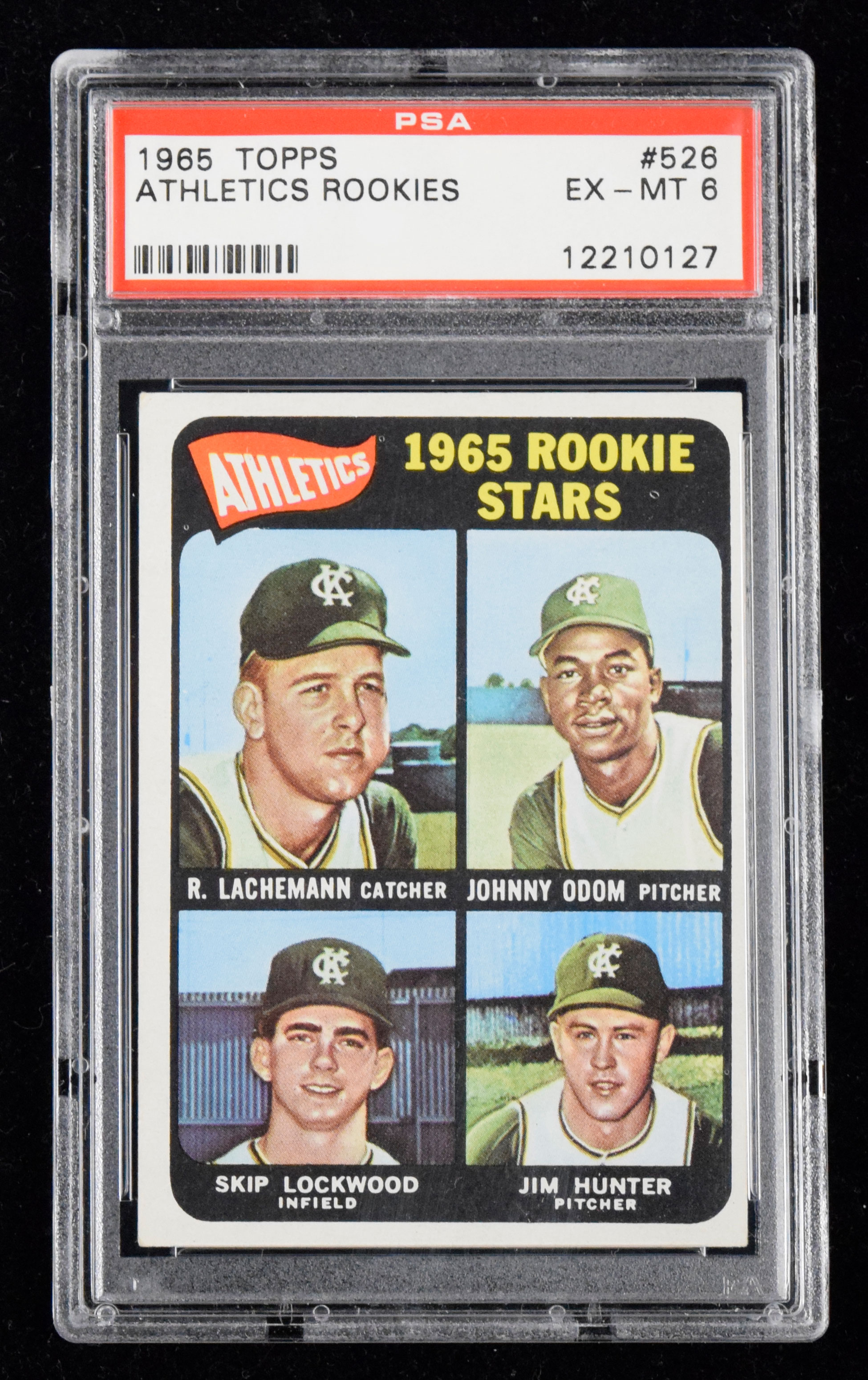 1965 Topps #526 Catfish Hunter rookie card graded PSA 6 (EX/MT).
