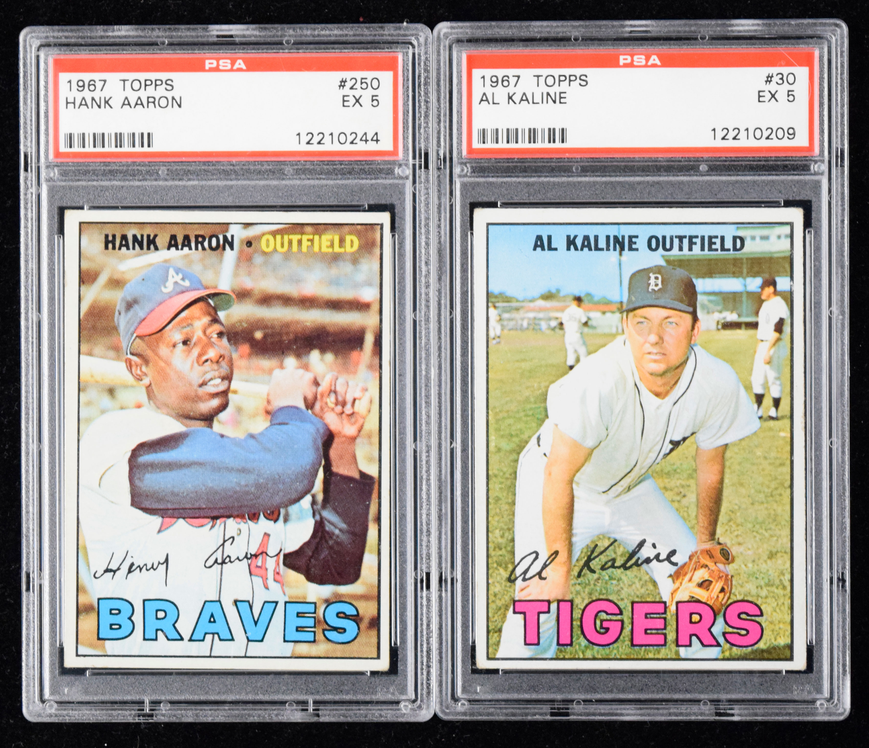 1967 Topps #s 30 Al Kaline and 250 Hank Aaron both graded PSA 5 (EX).