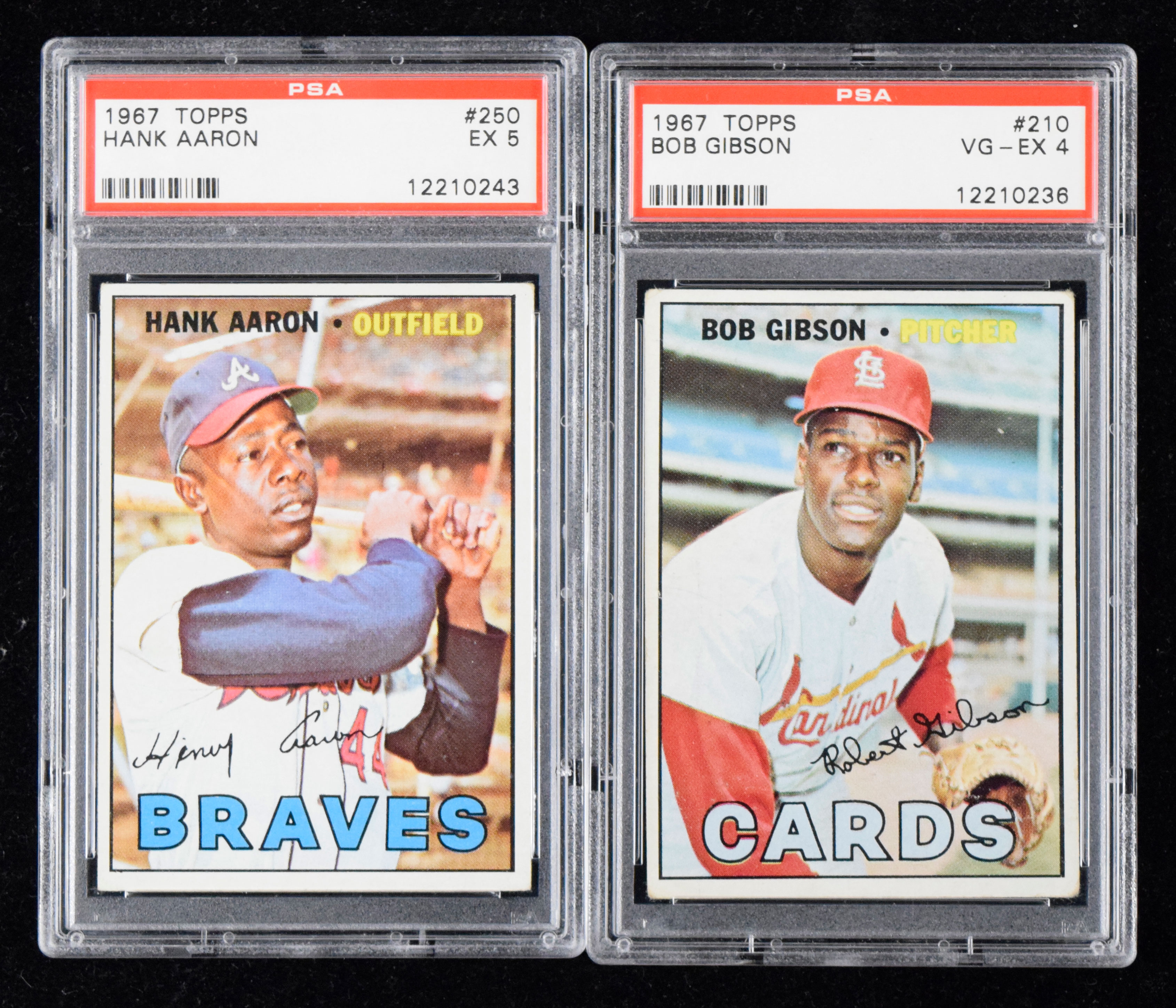 1967 Topps #s 210 Bob Gibson (PSA 4 VG/EX) and 250 Hank Aaron (PSA 5 EX).