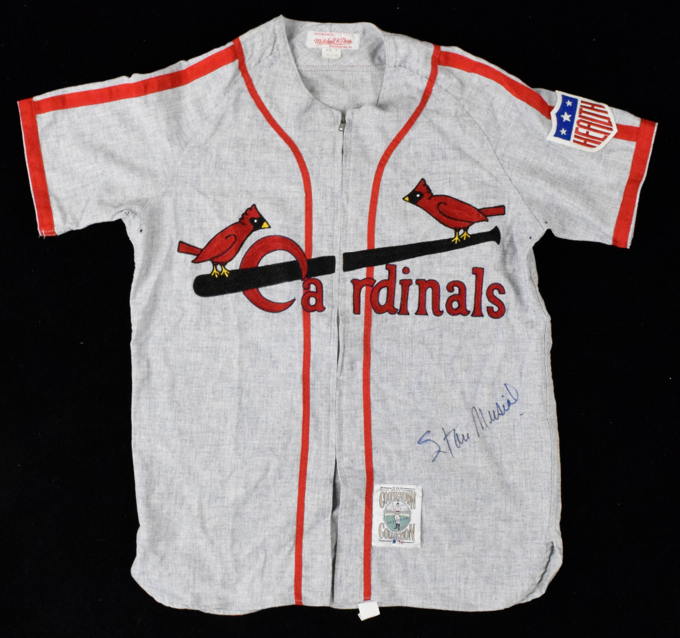 Description:Stan Musial signed St. Louis Cardinals throwback jersey (NM). Mitchell & Ness size M Cardinals #6 Stan Musial jersey signed by Musial in blue marker. Signature rates 8 out of 10: NM