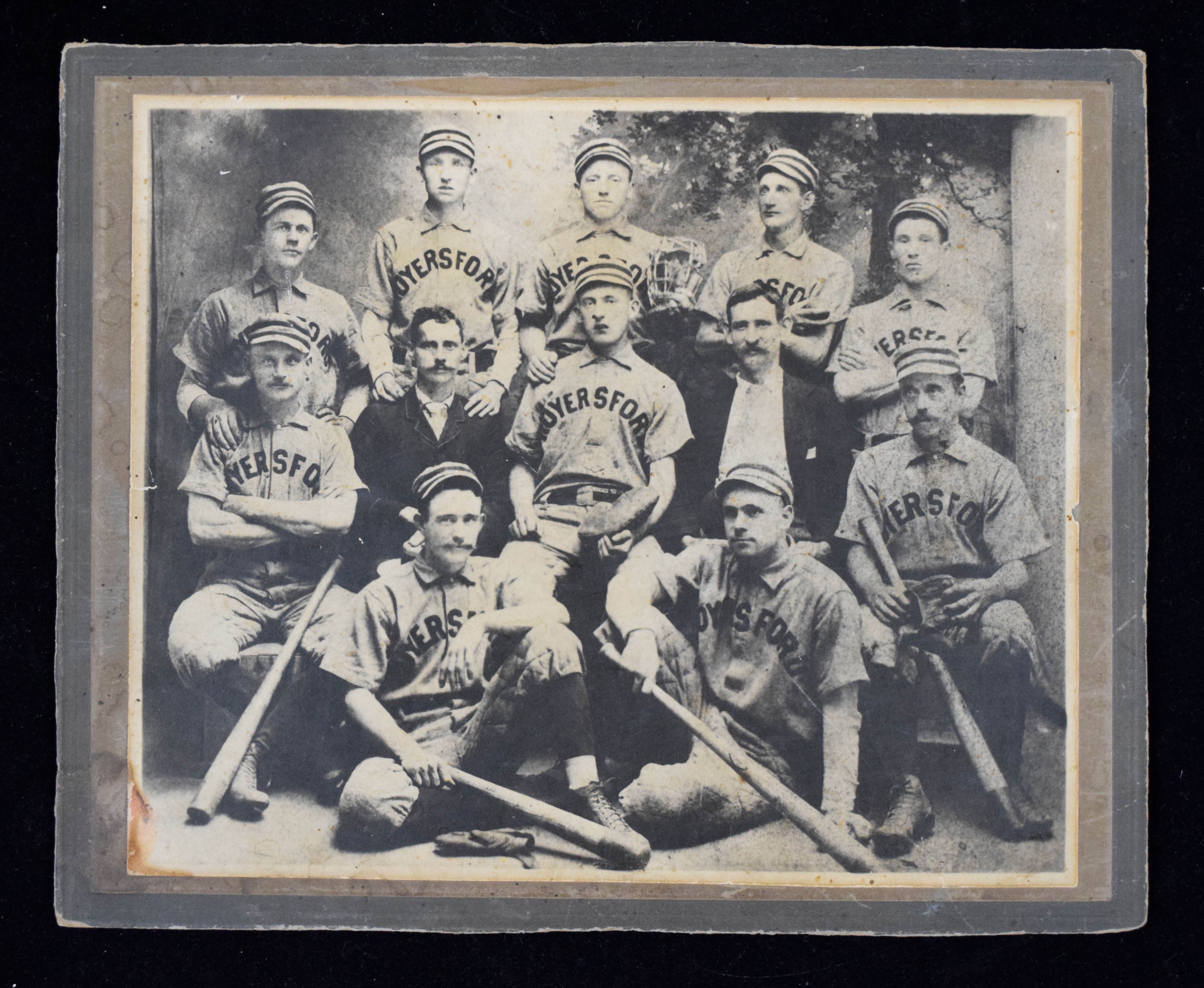Description:Royersford (PA) baseball team photograph, c.1890s (VG). 8"x9.5" team photo mounted on 9"x11" backing. Scattered surface wear, along with some edge wear and staining: VG