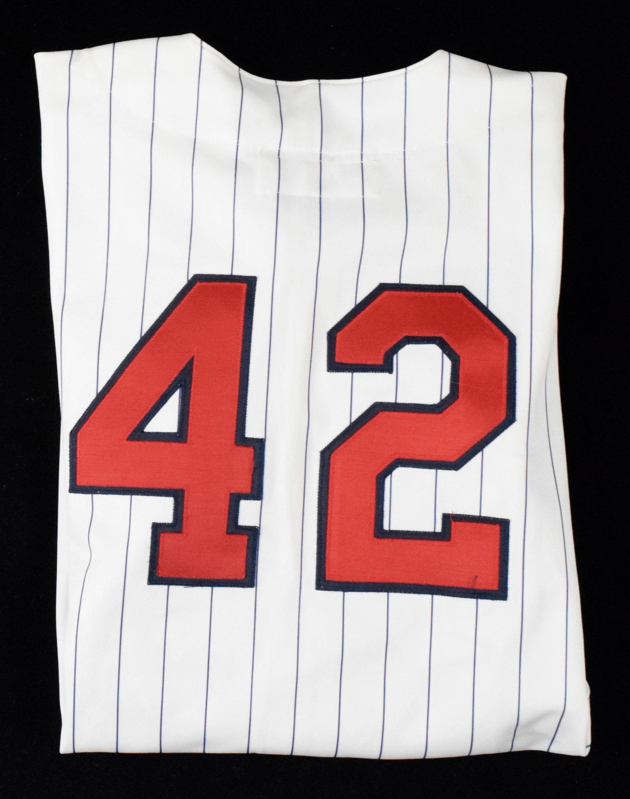 Description:1992 Dick Such professional model Minnesota Twins jersey (EX/MT). Russell Athletic MLB Authentic Diamond Collection size 46 jersey with "Twins" and #42 sewn on the front, along with #42 sewn on the back. TC logo patch is sewn on the left sleeve, "92-2" year/set tag is sewn inside the collar, and Russell Athletic tag is on the front tail with 100% Polyester and extra length flag tags attached. Light overall use/wash wear: EX/MT