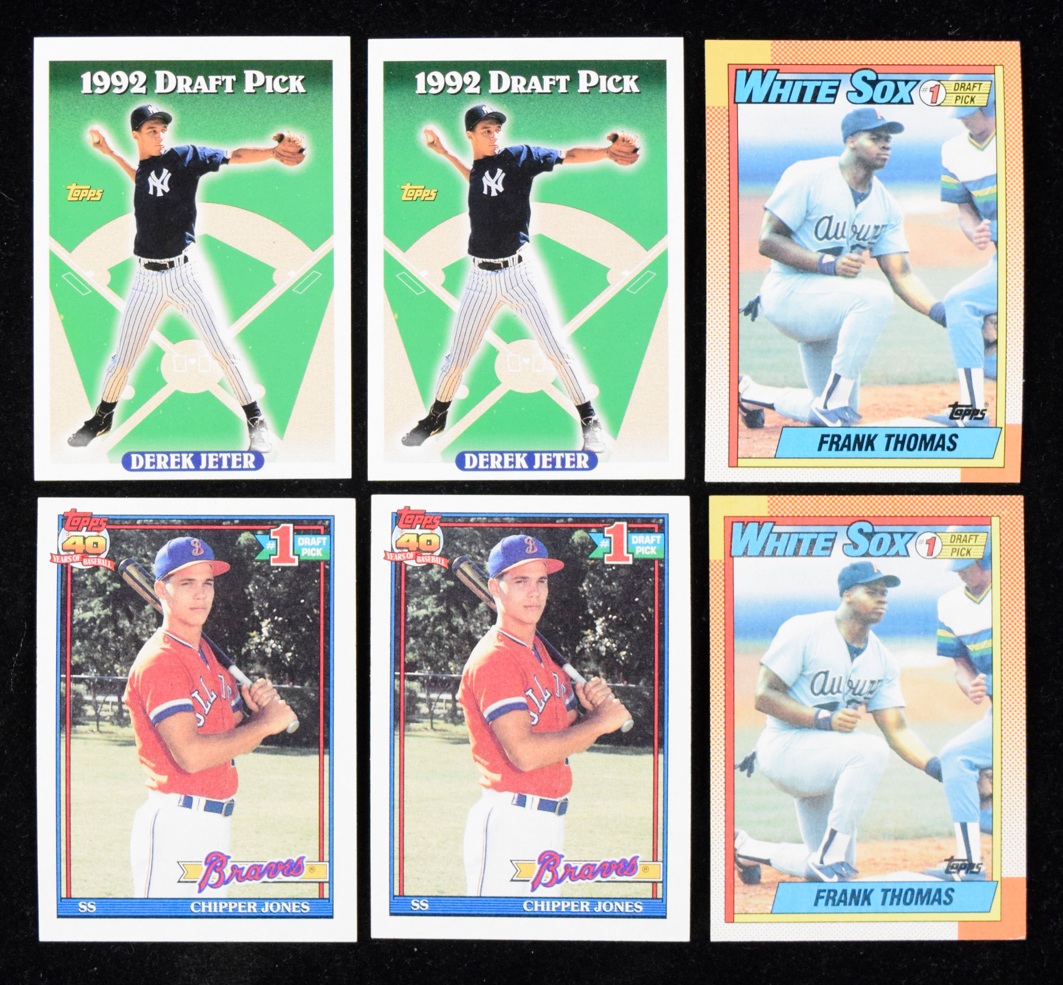 Description:Lot of (12) 1988-1994 Topps complete sets, including (2) 1993 Topps with Derek Jeter RC (EX-MT). Nice quantity of Topps hand-collated sets, with (2) 1988, (2) 1989, (2) 1990, (2) 1991, (2) 1993 and (2) 1994. Good selection of RCs in these years, including Frank Thomas, Derek Jeter, Chipper Jones, Tom Glavine and more. Most cards appear NM-NM/MT or better, with a few less here and there. Range: EX-MT.