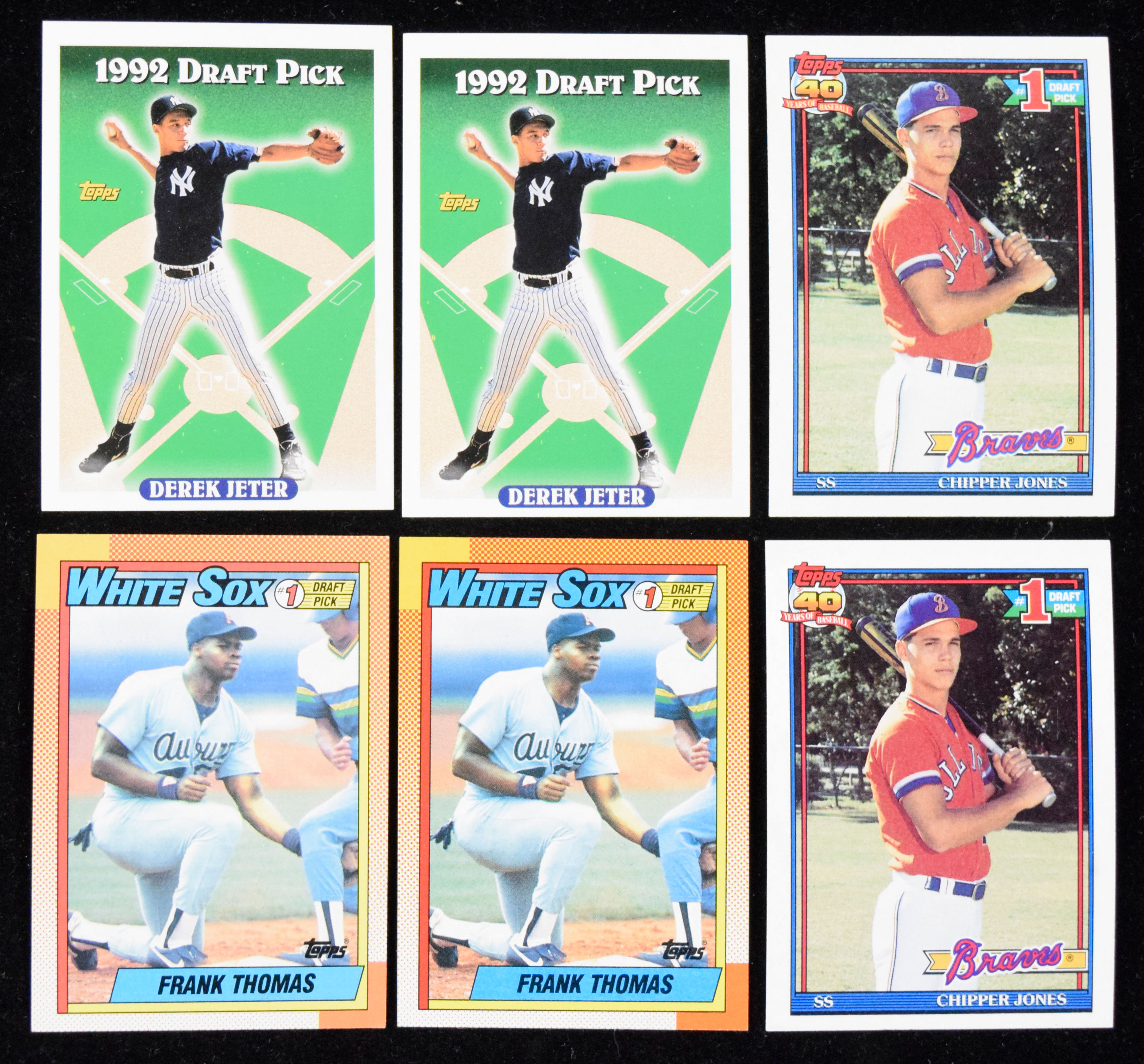 Description:Lot of (12) 1988-1994 Topps complete sets, including (2) 1993 Topps with Derek Jeter RC (EX-MT). Nice quantity of Topps hand-collated sets, with (2) 1988, (2) 1989, (2) 1990, (2) 1991, (2) 1993 and (2) 1994. Good selection of RCs in these years, including Frank Thomas, Derek Jeter, Chipper Jones, Tom Glavine and more. Most cards appear NM-NM/MT or better, with a few less here and there. Range: EX-MT.
