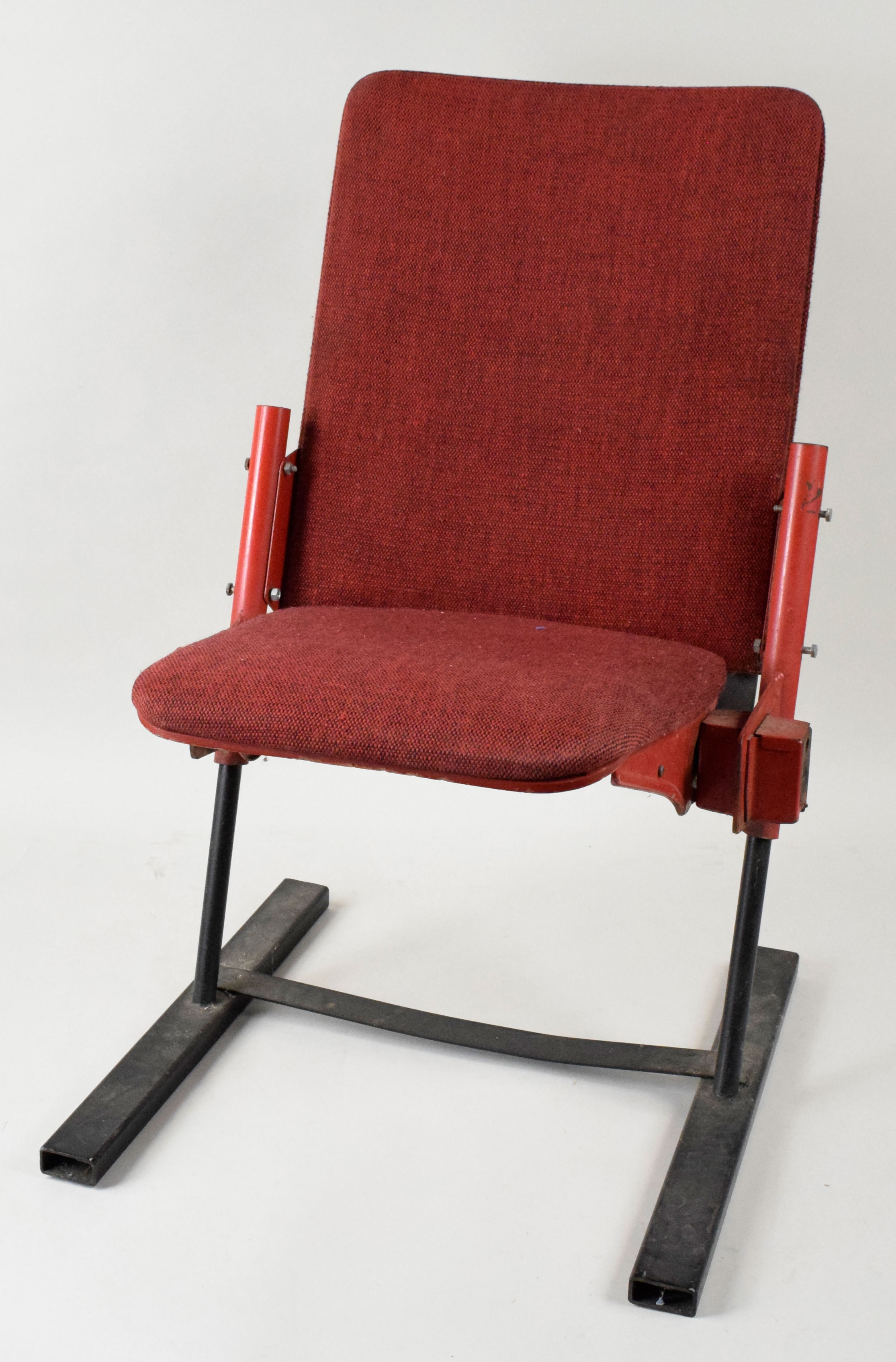 Description:Chicago Stadium cushioned seat used during Bulls final home game (EX). Cushioned seat #21 removed from the stadium following the Chicago Bulls final home game in 1994. Light stains on the fabric, and scattered rust spots on the metal portions of the seat. Includes letter of provenance from former 76ers employee in attendance at the game: EX. NORA: PLEASE PICK UP PHOTO FROM DEC. 12 PREMIER, LOT 760