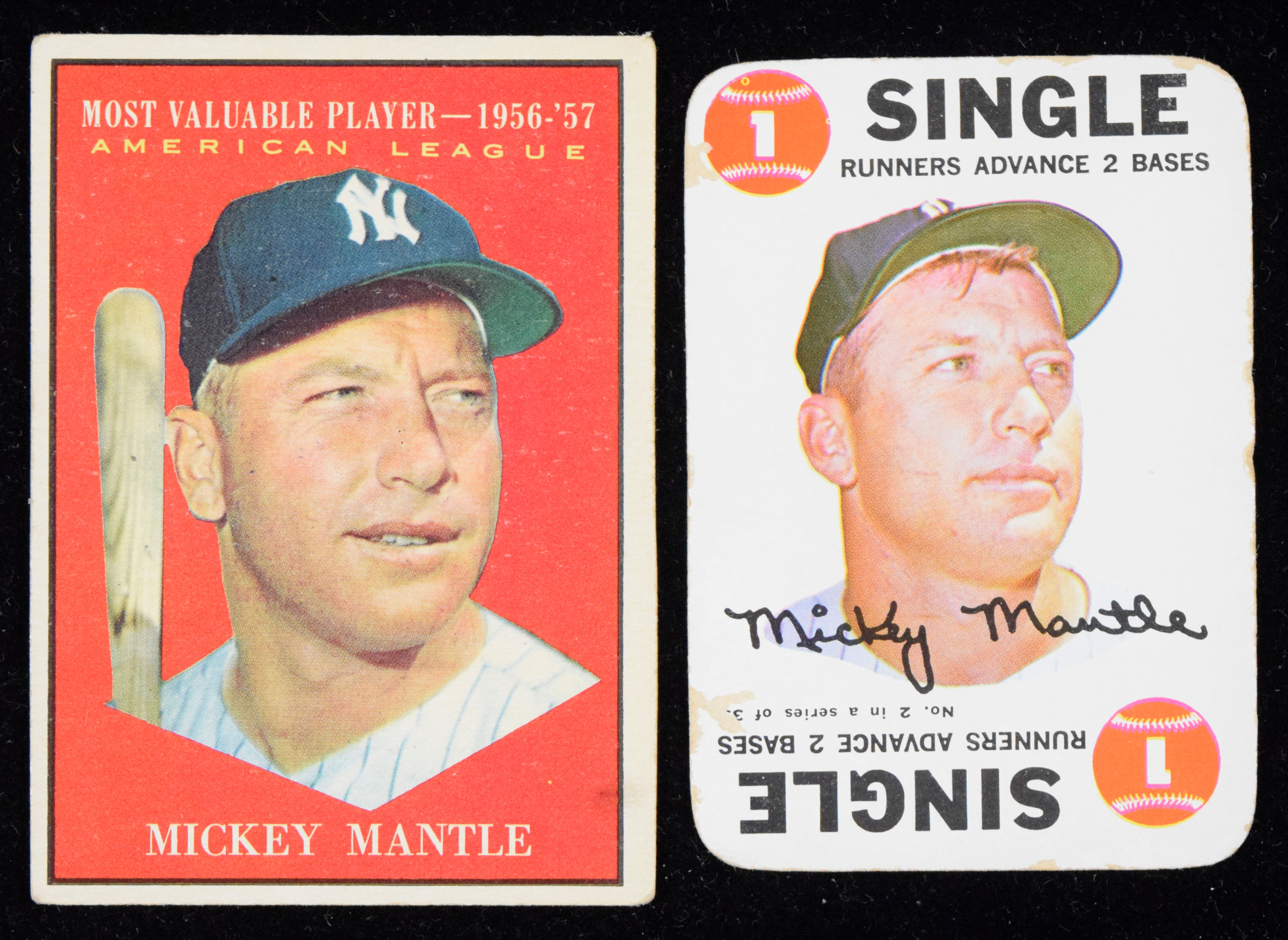 Description:Lot of (2) Topps Mickey Mantle cards, with 1961 MVP and 1968 Game (PR-VG). Lower-grade lot of classic Mantle cards, with 1961 Topps MVP #475 (VG) and 1968 Topps Game #2 (PR). Range: PR-VG.
