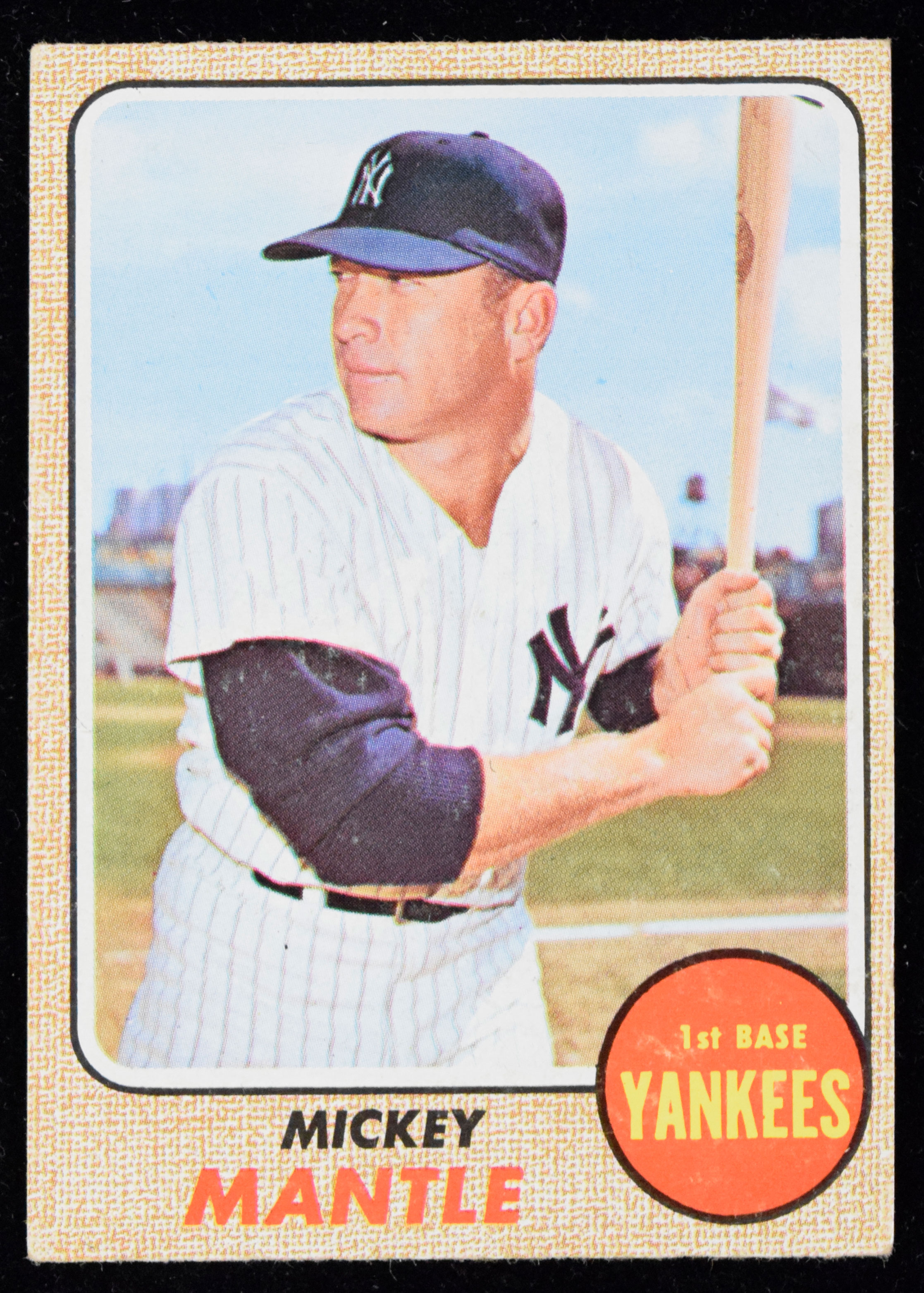 Description:1968 Topps #280 Mickey Mantle (VG/EX). Card has outstanding eye appeal with centering that slightly favors the right, and light to moderate wear on four corners. Back is clean: VG/EX.