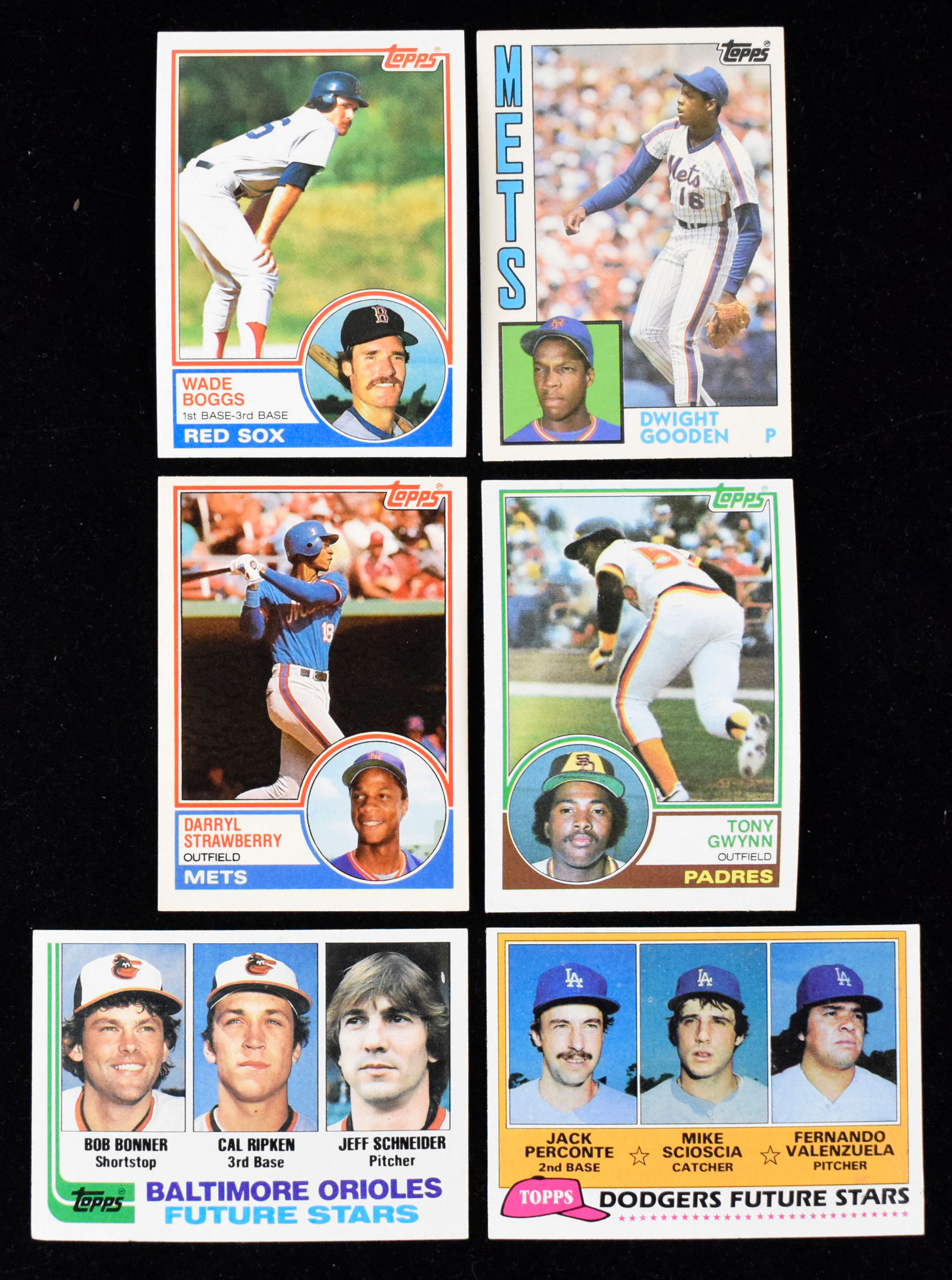 Description:Lot of (6) 1981-1986 Topps complete and partial baseball sets, with 1983 and 1984 Traded (EX-NM/MT). Lot includes (1) 1981 Topps near-compete set (appears to be missing two commons); (1) 1982 Topps set; (1) 1983 Topps set and (1) 1986 Topps set. Also included are 1983 (missing cards but has #108T Darryl Strawberry) and 1984 Topps Traded open factory box sets. Key RCs are present in each of the years but sets have not been checked-card by card for completion, and it's possible/likely some cards are missing. Most cards appear NM or better. Range: EX-NM/MT.