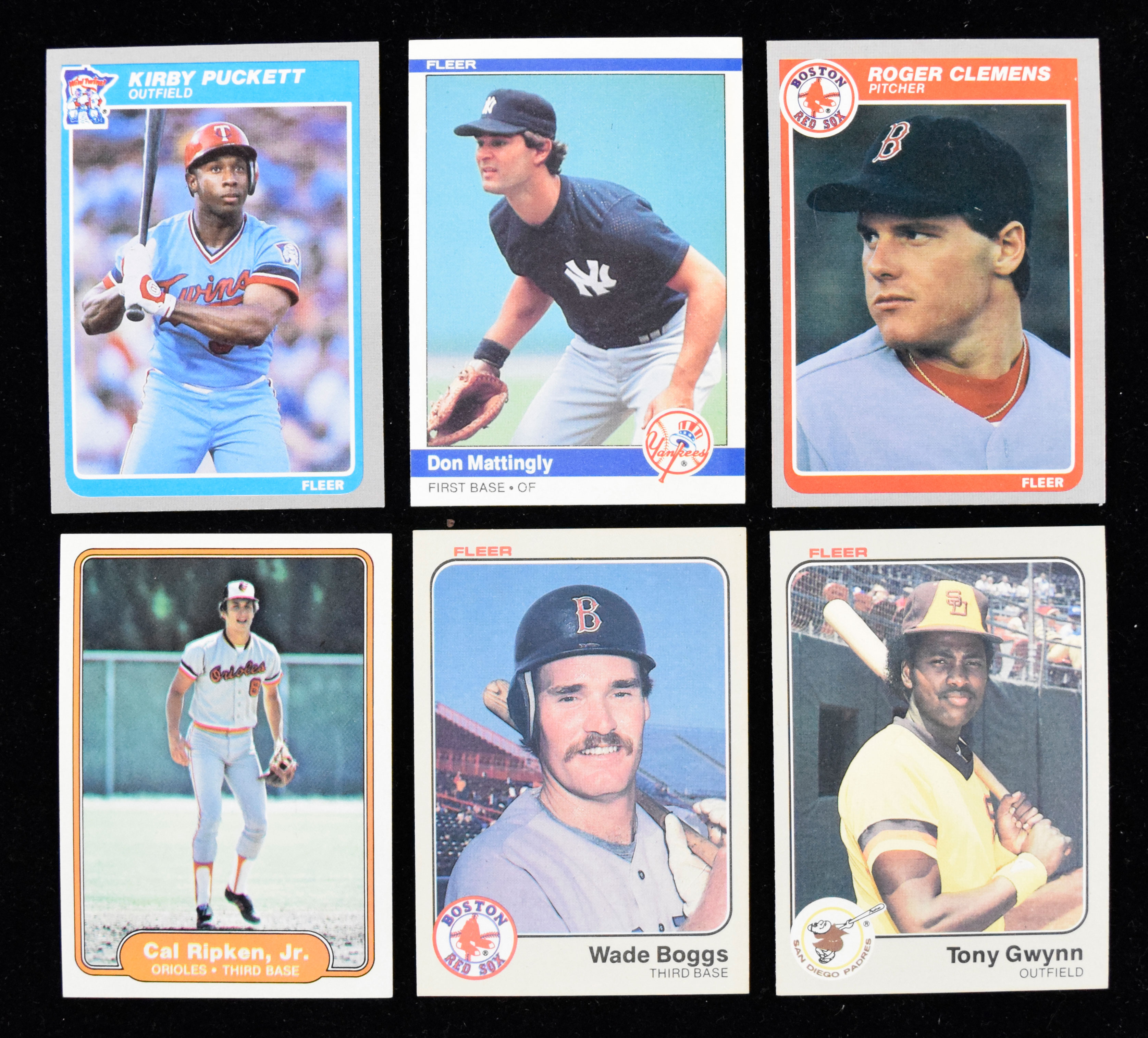 Description:Lot of (5) 1982-1986 Fleer complete sets with Mattingly, Ripken and Gwynn RCs (VG-NM/MT). Nice run of early 1980s Fleer sets with several key RCs, including Cal Ripken Jr., Tony Gwynn, Ryne Sandberg, Wade Boggs, Don Mattingly, Kirby Puckett and Roger Clemens. Lot includes one complete set from each of the following years: 1982, 1983, 1984, 1985 and 1986. Most cards appear NM or better. Range VG-NM/MT.
