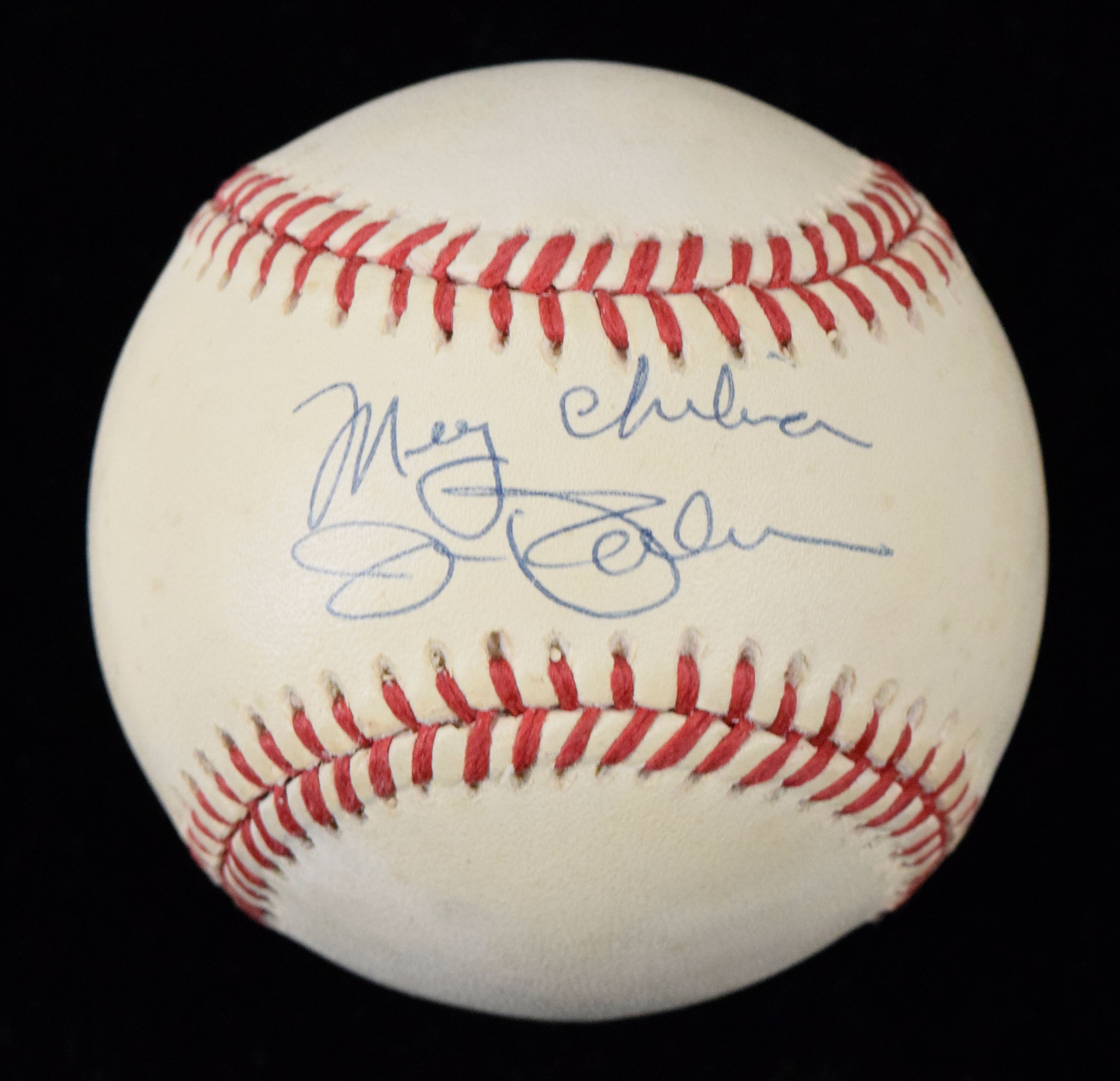 Description:Jim Palmer signed "Merry Christmas" baseball (EX). B.Brown AL ball signed by Palmer in blue ink with "Merry Christmas" inscription. Signature rates 8/9 out of 10. Light to moderate toning on each panel: EX MERRY CHRISTMAS