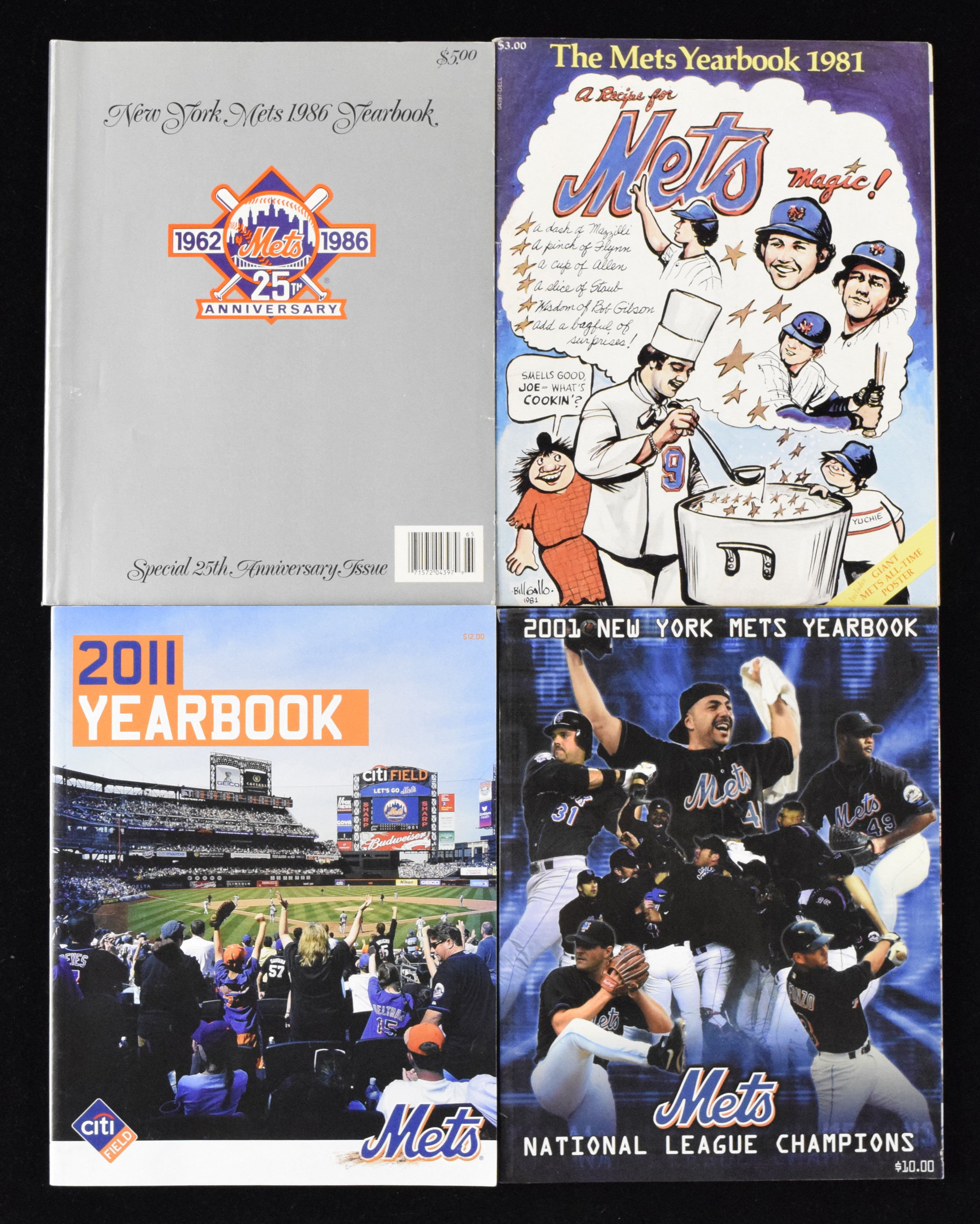 Description:Run of (31) 1981-2011 New York Mets yearbooks (VG/EX-MT). Nice modern run of New York Mets yearbooks, with from each year spanning 1981 through 2011, including the 1986 World Series championship publication. All yearbooks are intact, with most appearing EX-NM/MT. Range: VG/EX-MT.