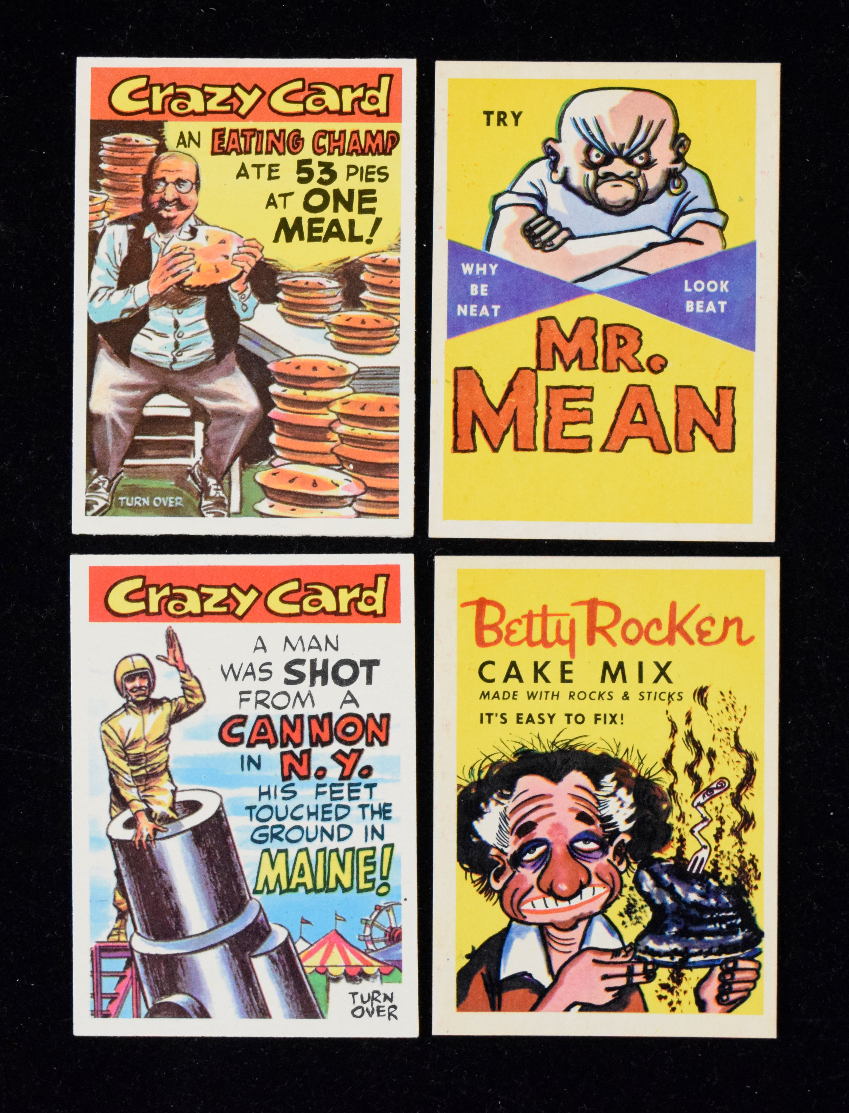 Description:1960 Leaf Foney Ads (Foney's Funnies) and 1961 Topps Crazy Cards complete sets (VG-NM) Very sharp sets with Leaf set in average EX/MT condition and general range runs EX-NM with a few scattered cards grading lesser (centering can be an issue). The Topps set is in strong EX/MT-NM average condition with a few lesser: VG-NM