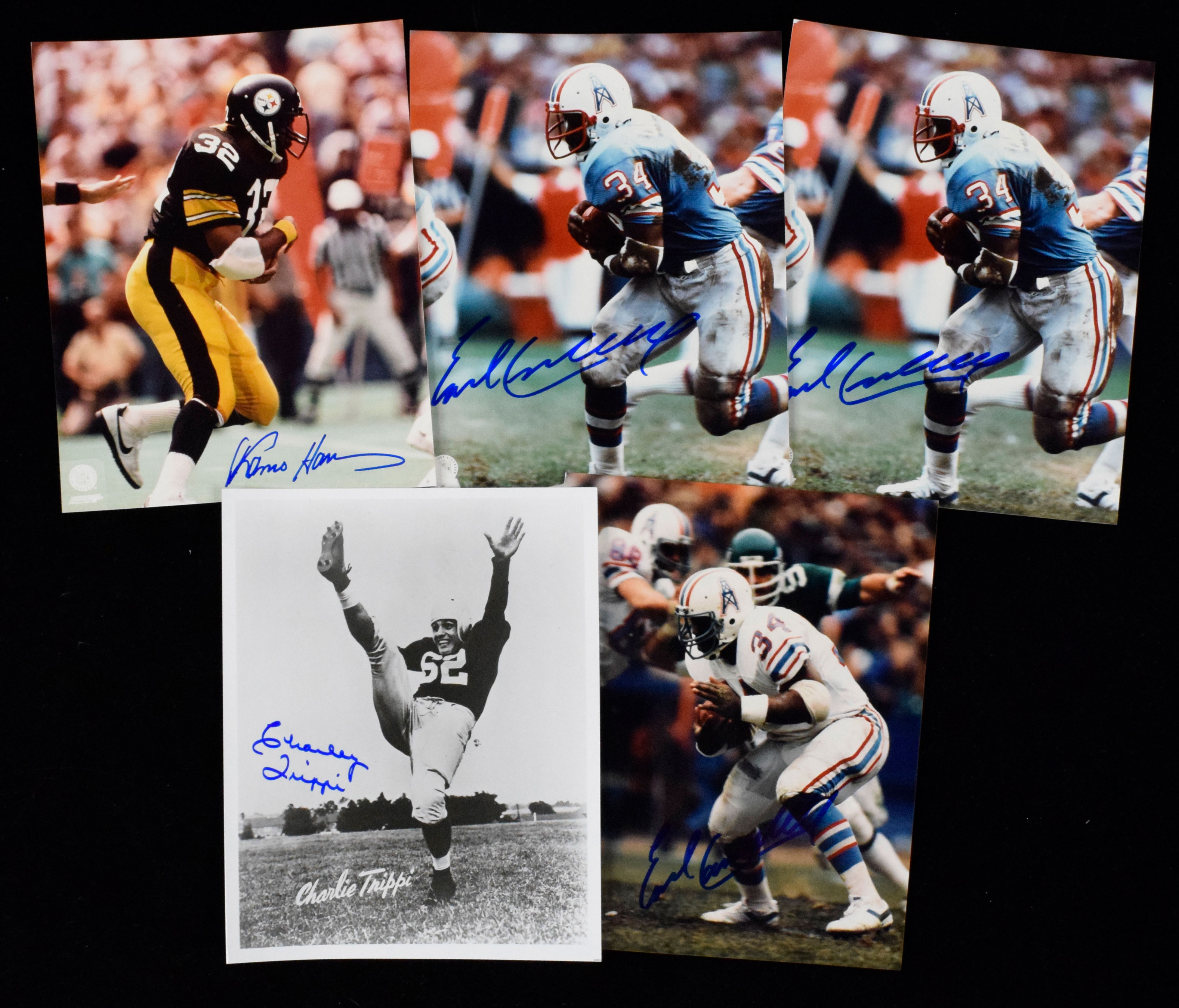 Description:Lot of (10) NFL HOFer-autographed 8"x10" photos, including (3) Earl Campbell, Franco Harris (Sigs. MT). High-value lot of autographed photos (with duplication), each of which is signed by the respective player in marker. Includes (1) Franco Harris; (3) Earl Campbell; (1) Andy Robustelli with "HOF 71" inscription; (3) Charley Trippi; and (2) Leroy Kelly. Signatures rate 9 out of 10 and photos appear EX/MT-NM.