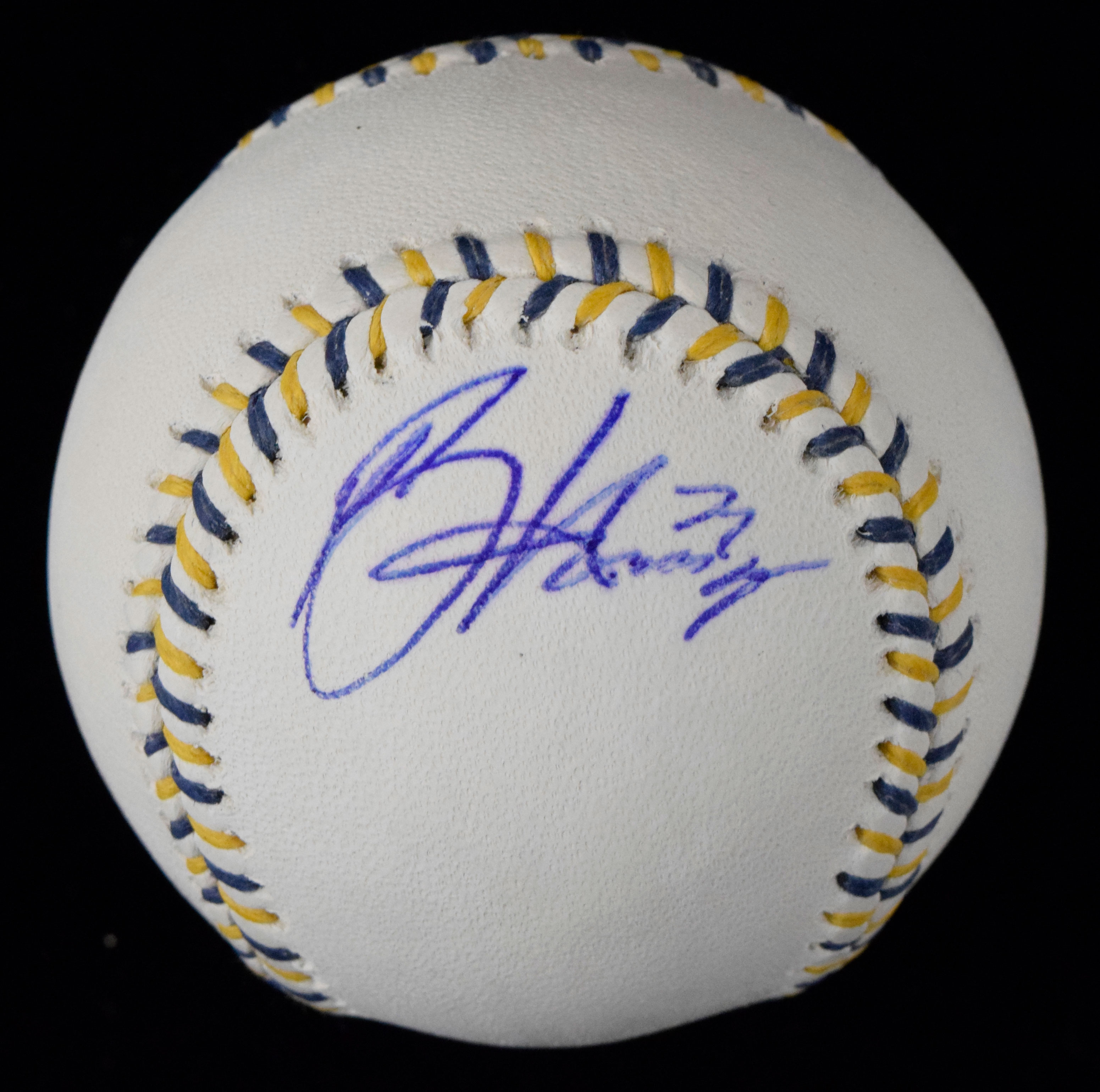 Bryce Harper signed 2016 All-Star Game baseball (NM). Harper signed the side panel in blue ink. Signature rates 7 out of 10: NM