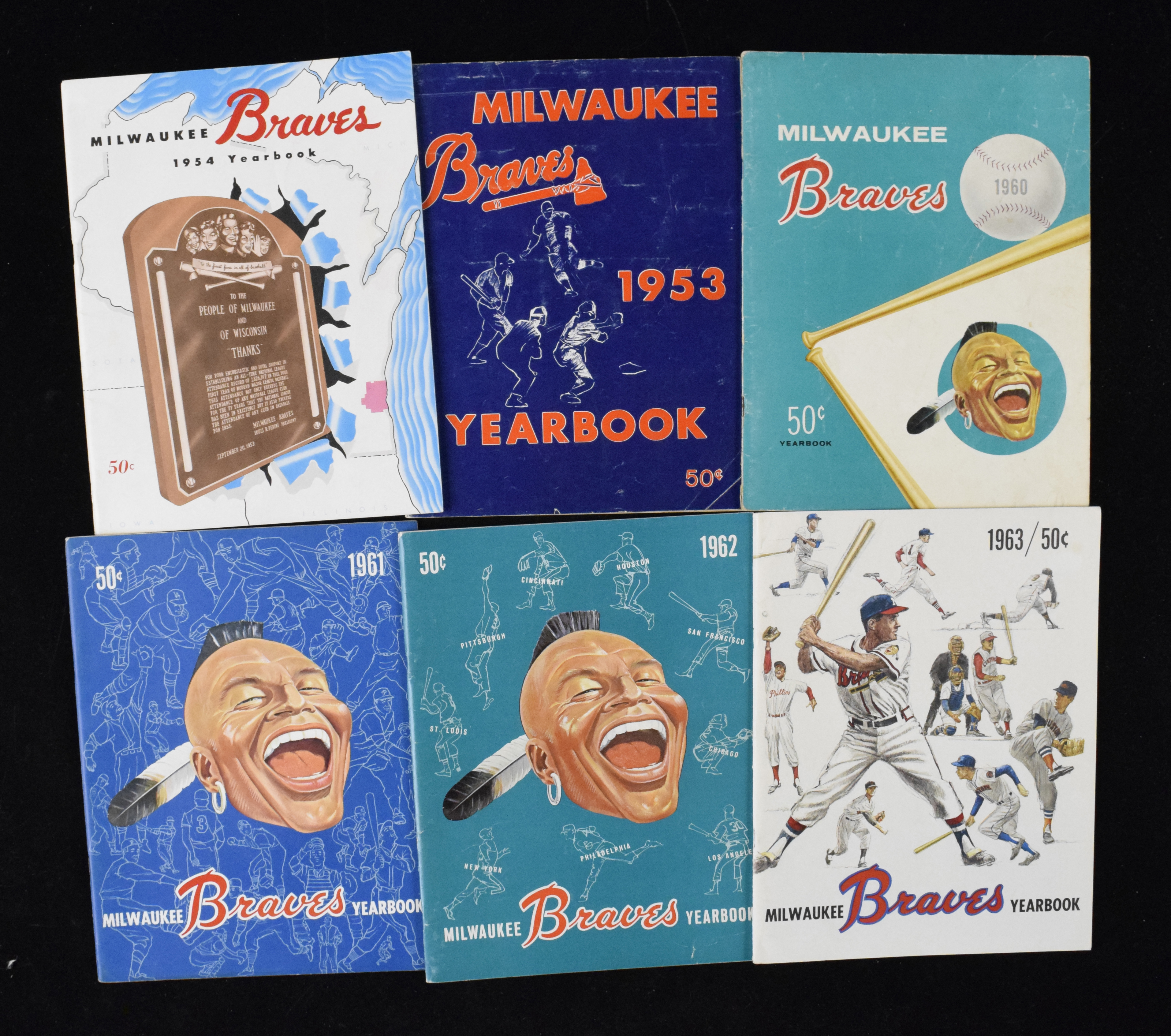 Description:Lot of (22) Milwaukee Braves yearbooks from 1953-1964 (FR/GD-NM). Includes 1953, (6) 1954, 1959, (2) 1960, (2) 1961, 1961 second edition, (5) 1962, (3) 1963, and 1964. Most appear to average VG/EX-EX overall, but each has not been individually examined page by page. Range: FR/GD-NM