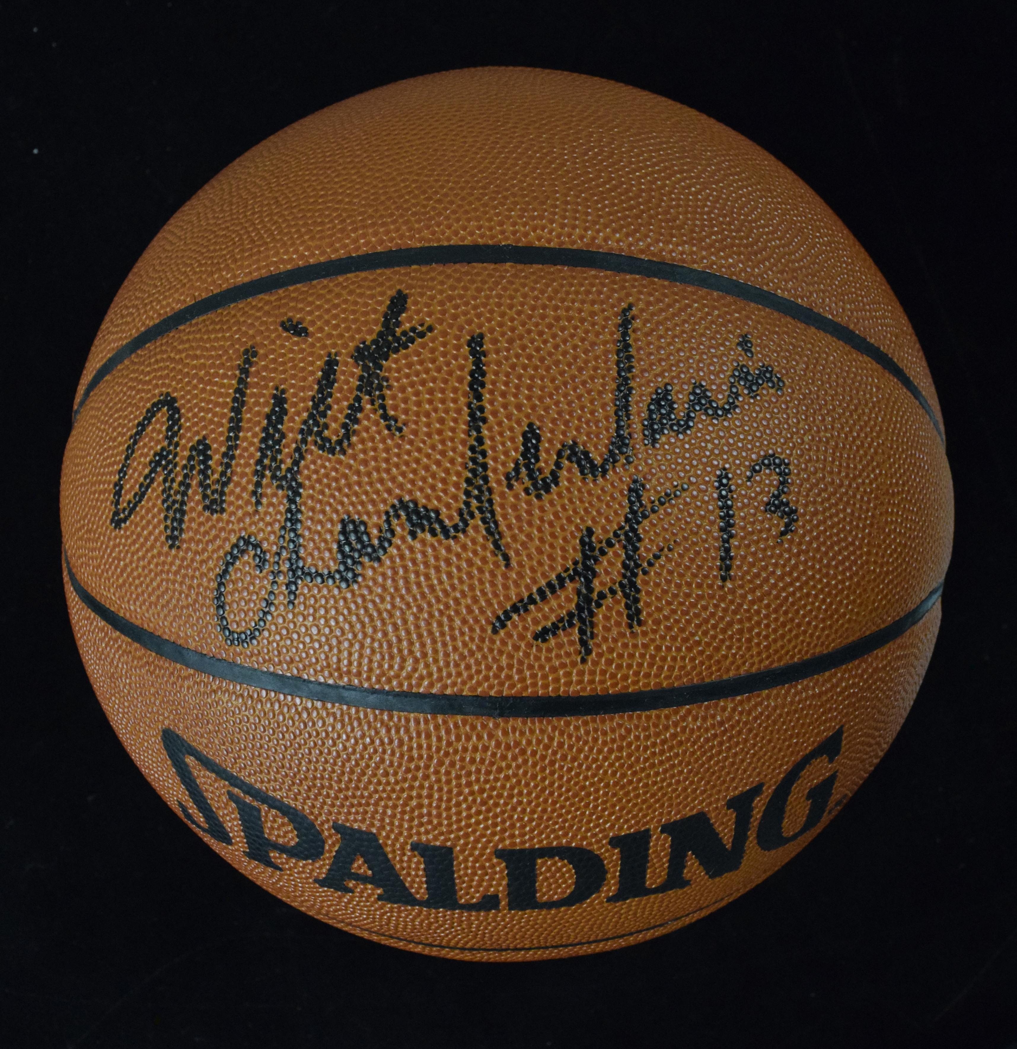 Description:High grade Wilt Chamberlain autographed Spalding NBA basketball (NM). D.Stern Official NBA Game Ball signed by Chamberlain in black marker. Signature rates 9 out of 10: NM ($1,000-$2,000)