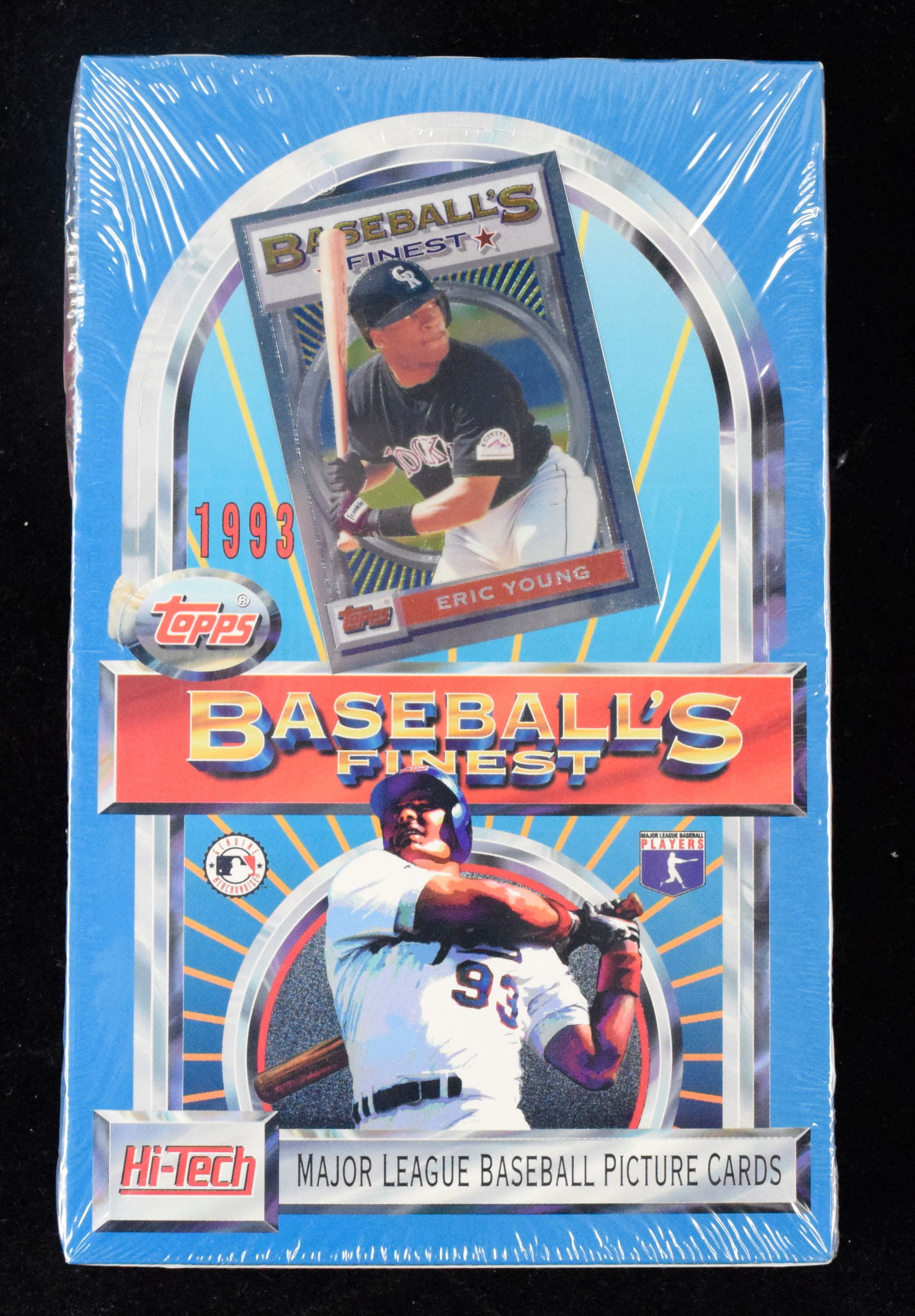 Description:1993 Topps Finest Baseball unopened box, Refractors possible (EX-NM). Factory-sealed box contains unopened packs of Topps' premier product from 1993, for the first-time offering chances at high-value Refractor inserts. Light handling and storage wear: EX-NM. ($500-$1,000)
