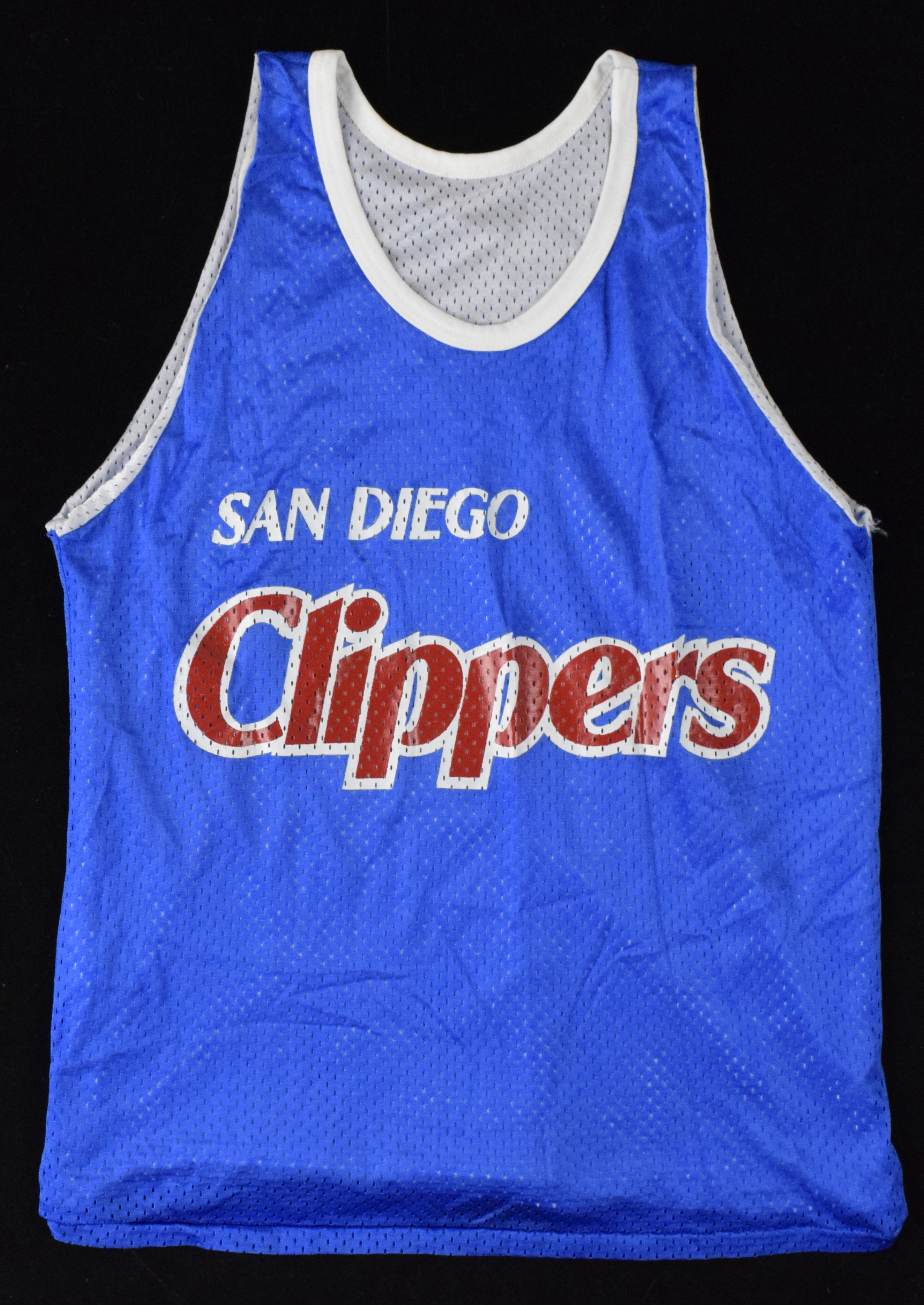 Description:Bill Walton professional model San Diego Clippers practice jersey, c.early 1980s (EX/MT). Don Alleson brand size XL mesh jersey with "San Diego Clippers" across the front. Includes certificate of provenance from Walton Family: EX/MT