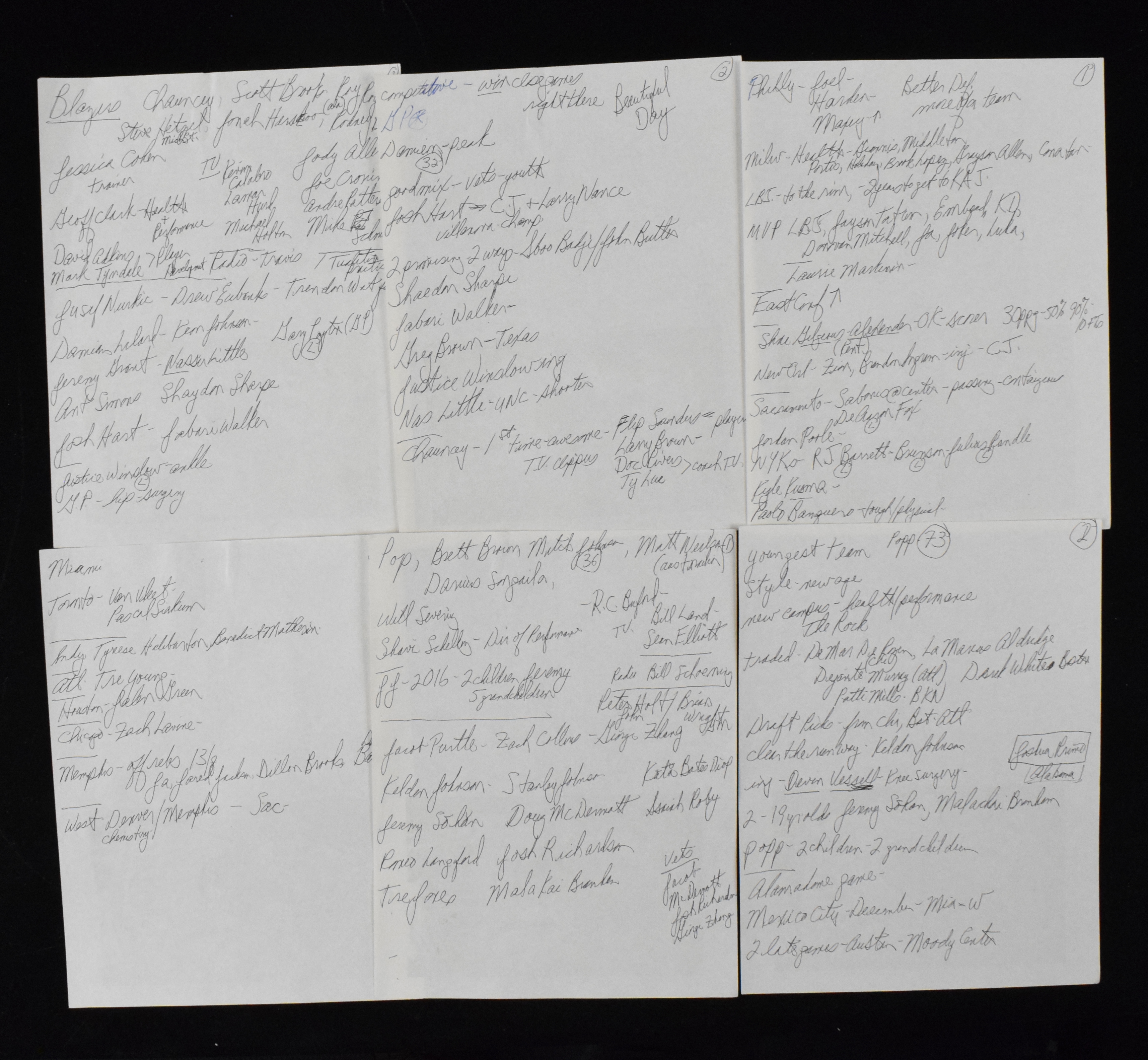Description:Lot of Bill Walton's handwritten NBA notes (EX-EX/MT). Includes (13) 8.5"x11" pages with heaviest concentration of notes on the 2022-23 San Antonio Spurs and Portland Trail Blazers, and the Spurs franchise history, with a smaller portion on other teams and players. Includes certificate of provenance from Walton Family: EX-EX/MT