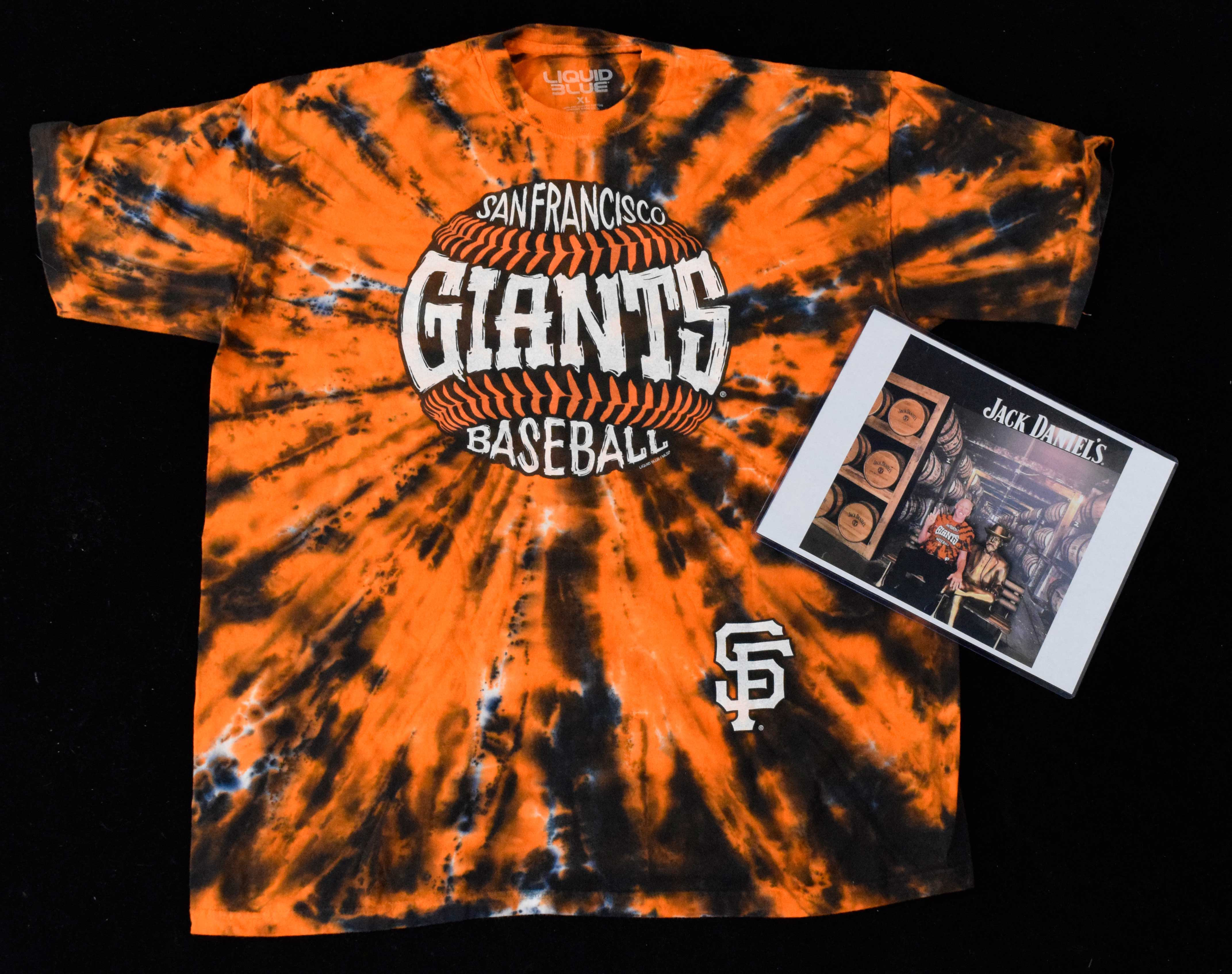 Description:Bill Walton's San Francisco Giants tie-dye t-shirt with related photograph (EX/MT). Liquid Blue size XL Giants shirt with 8.5"x11" printed off photo picturing Walton wearing the shirt. Includes certificate of provenance from Walton Family: EX/MT