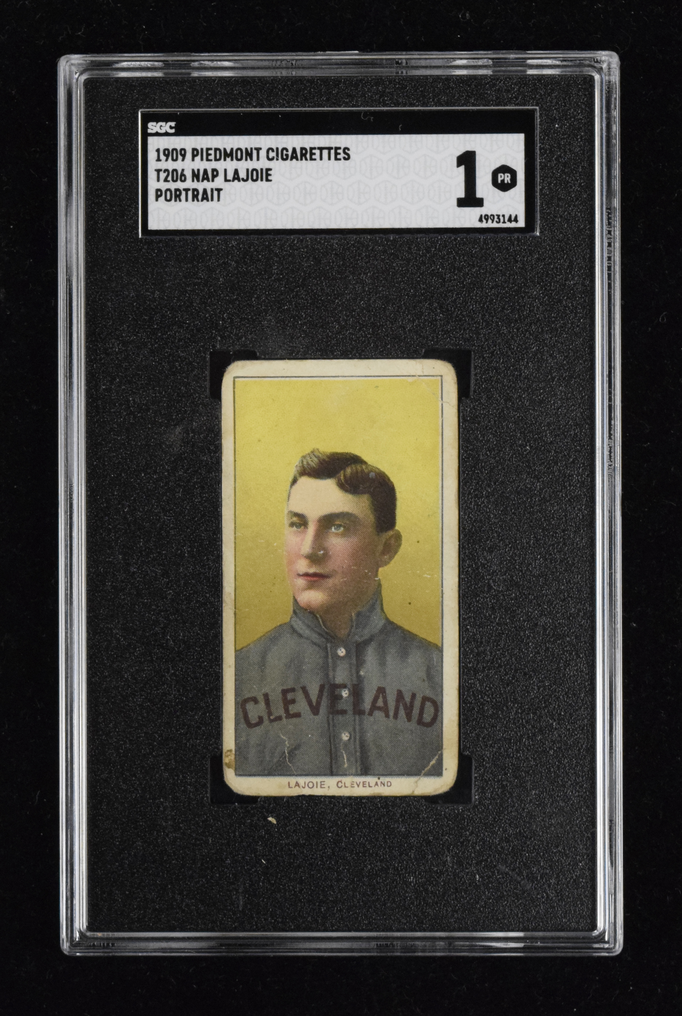 Description:1909 T206 Nap Lajoie portrait with Piedmont 150 Subjects back graded SGC 1 (PR). ($300-$500)