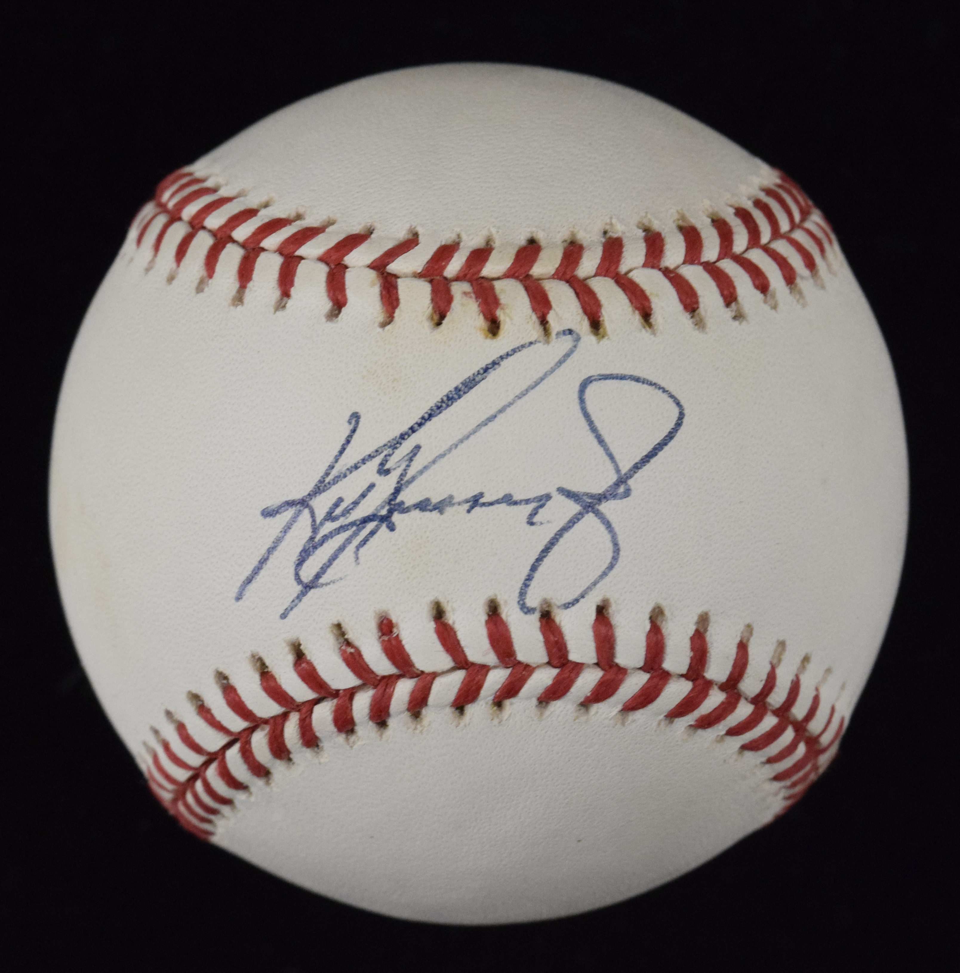 Description:Ken Griffey Jr. signed G.Budig AL baseball (EX/MT). Griffey signed the sweet spot in blue ink. Signature rates 9 out of 10. Small areas of light toning: EX/MT