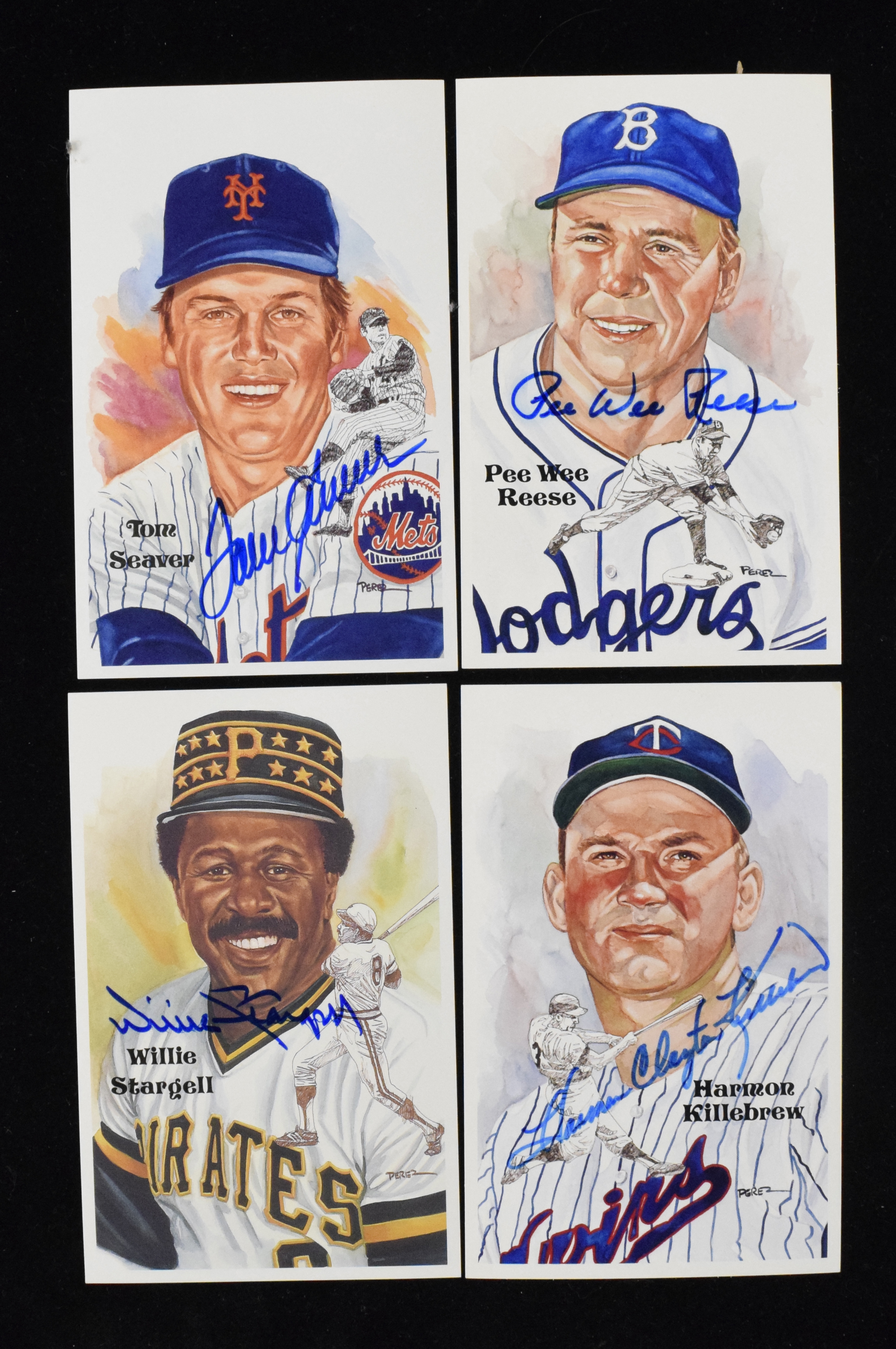 Description:Lot of (10) Hall of Famer autographed Perez Steele postcards incl. Tom Seaver (EX/MT-NM) Includes Tom Seaver, Don Sutton, Harmon Killebrew (full name), Monte Irvin, Robin Roberts, Eddie Mathews, Bob Gibson, Pee Wee Reese, Gaylord Perry, Steve Carlton, Earl Weaver, Bill Mazeroski, Jim Palmer, Willie Stargell, and Juan Marichal. Marker signatures rate 7 to 9/10 out of 10: EX/MT-NM