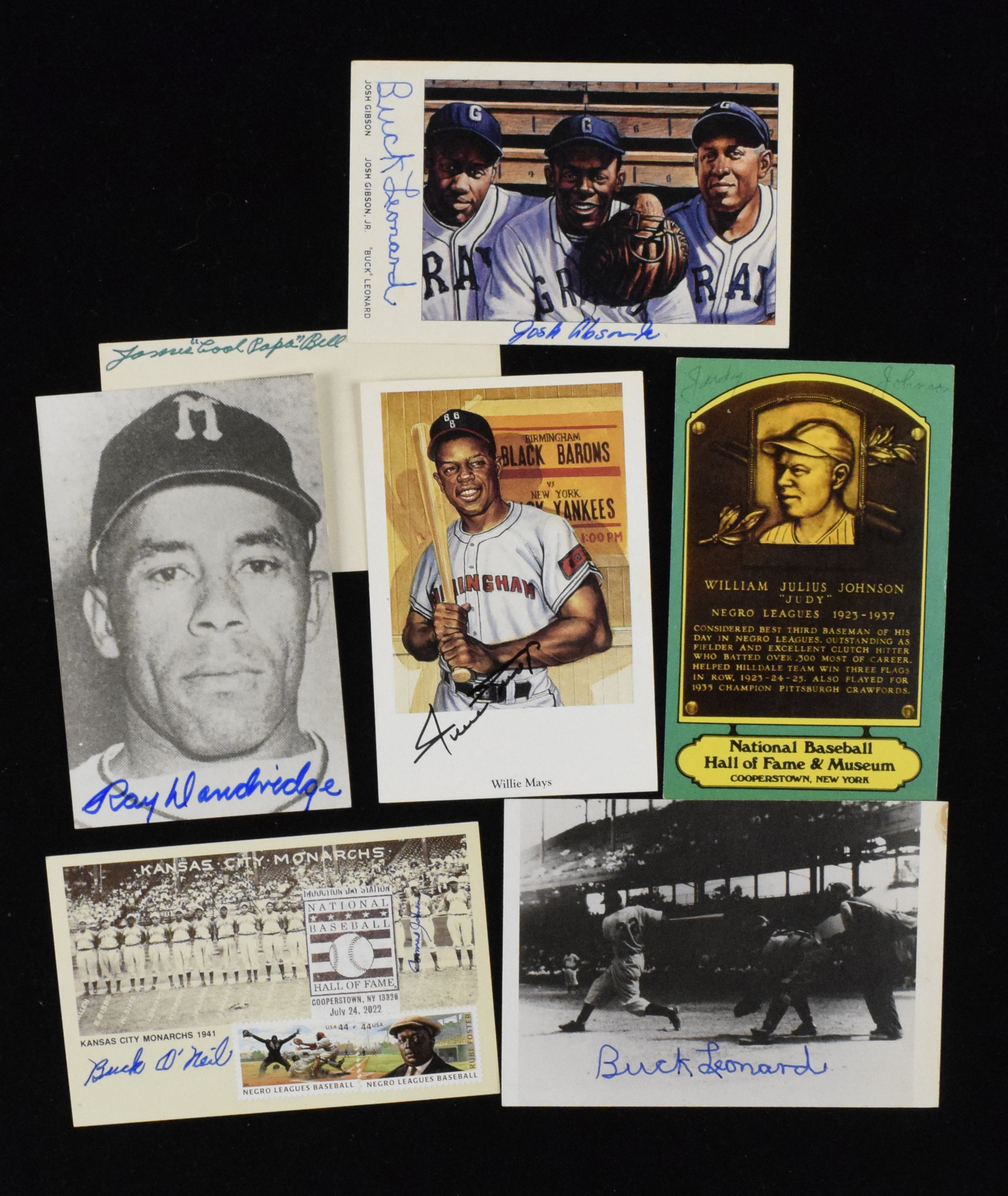 Description:Lot of (50) Negro League related autographed pieces incl. HOFers with Willie Mays (VG-NM) Assortment of trading cards, postcards, index cards, small images, and other type items. Signers include Willie Mays, Leon Day, (2) Monte Irvin, (3) Ray Dandridge, (5) Buck Leonard, Buck Leonard and Josh Gibson Jr dual-signed postcard, Minnie Minoso, (3) Judy Johnson, (3) Cool Papa Bell, Mahlon Duckett, Wilmer Harris, Jim Zapp, Lou Dials, (4) Buck O'Neil, Double Duty Radcliffe, and others. Signatures generally rate 7 out of 10 or better. Touch of mostly light scattered wear is a touch more accentuated in some cases: VG-NM