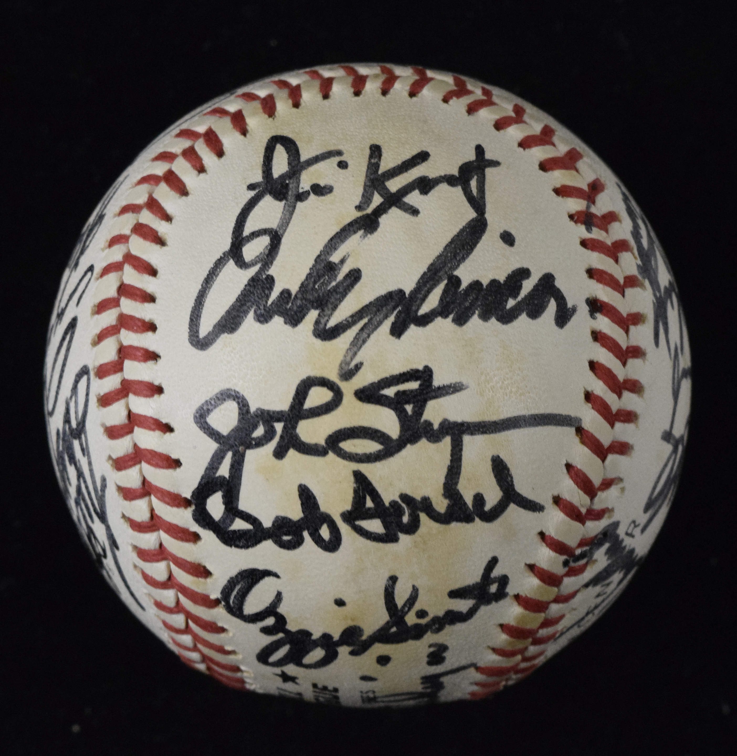 Description:1982 World Series champion St. Louis Cardinals team signed baseball - JSA (EX). C.Feeney NL ball signed by (22) members of the 1982 Cardinals including Whitey Herzog, Bruce Sutter, Ozzie Smith, Jim Kaat, Keith Hernandez, Lonnie Smith, Joaquin Andujar, Tom Herr, Willie McGee, Ken Oberkfell, Bob Forsch, Darrell Porter, John Stuper, George Hendrick, and others. Signatures rate 7 to 9/10 (avg 8/9) out of 10. Includes full LOA from JSA. Scattered areas of light to moderate toning: EX ($400-$600)