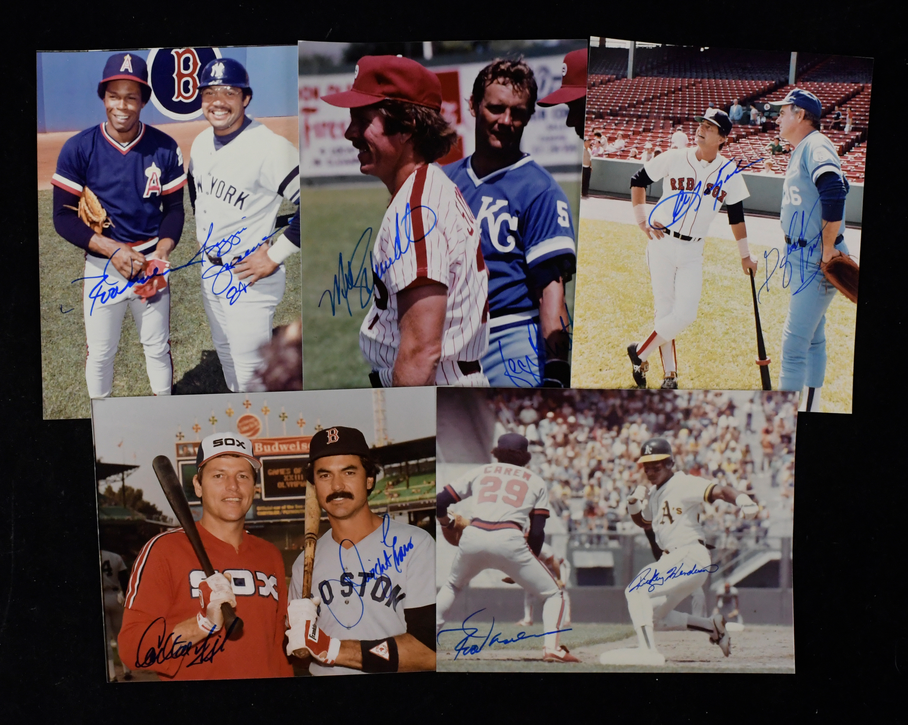 Description:Lot of (5) 8"x10" photographs dual-signed by baseball stars and HOFers (NM-NM/MT). Includes 8"x10" photo dual-signed by Gaylord Perry and Carl Yastrzemski, 8"x10" photo dual-signed by Rickey Henderson and Rod Carew, 8"x10" photo dual-signed by Mike Schmidt and George Brett, 8"x10" photo dual-signed by Rod Carew and Reggie Jackson, 8"x10" photo dual-signed by Carlton Fisk and Dwight Evans. Signatures rate 8 to 10 out of 10: NM-NM/MT