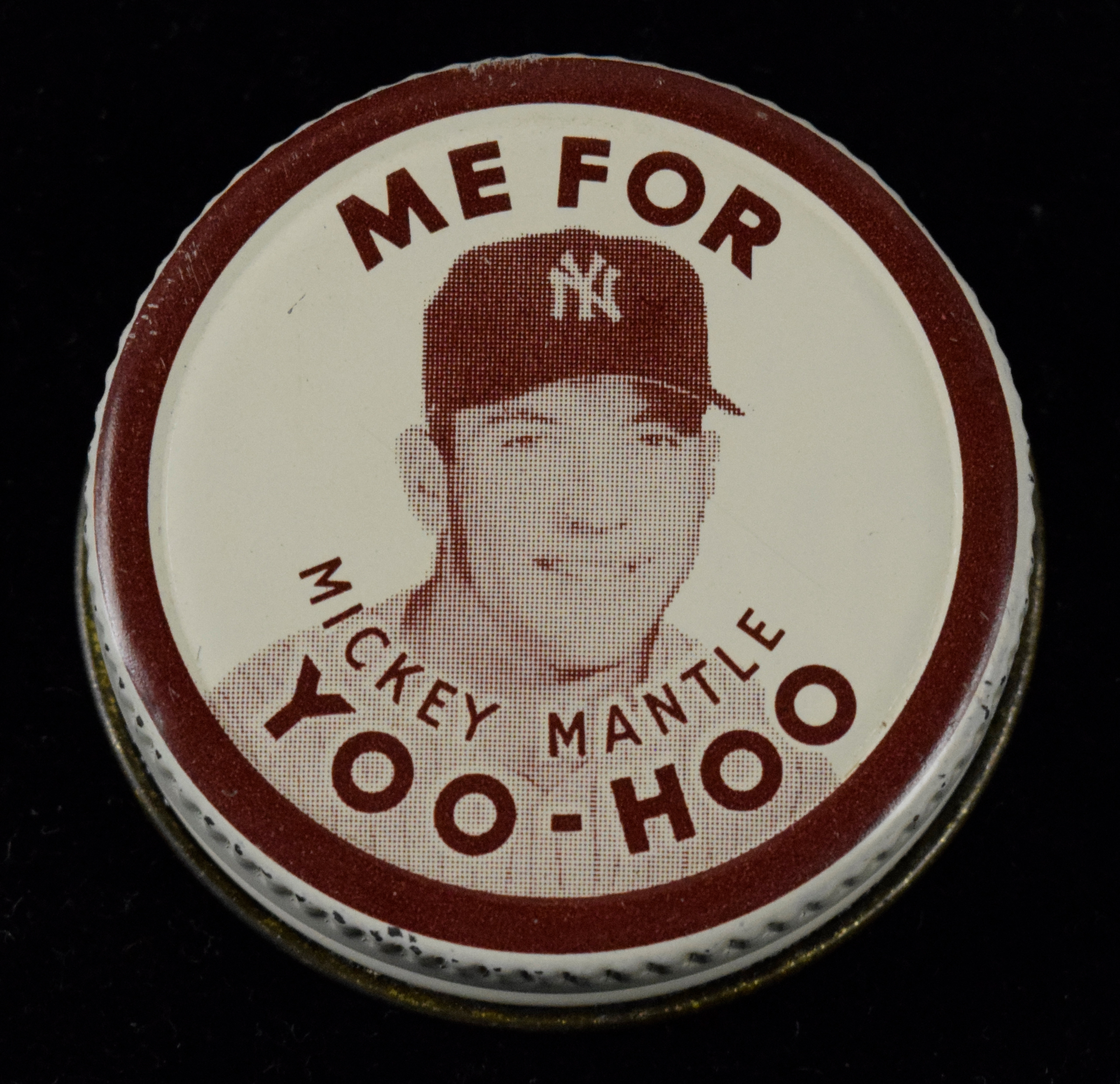 Description:High grade Mickey Mantle Yoo-Hoo bottle cap, c.1959 (EX/MT). Screw-on lid picturing a young Mantle with "Me For Yoo-Hoo" slogan. Just a hint of very minor wear: EX/MT ($500-$1,000)