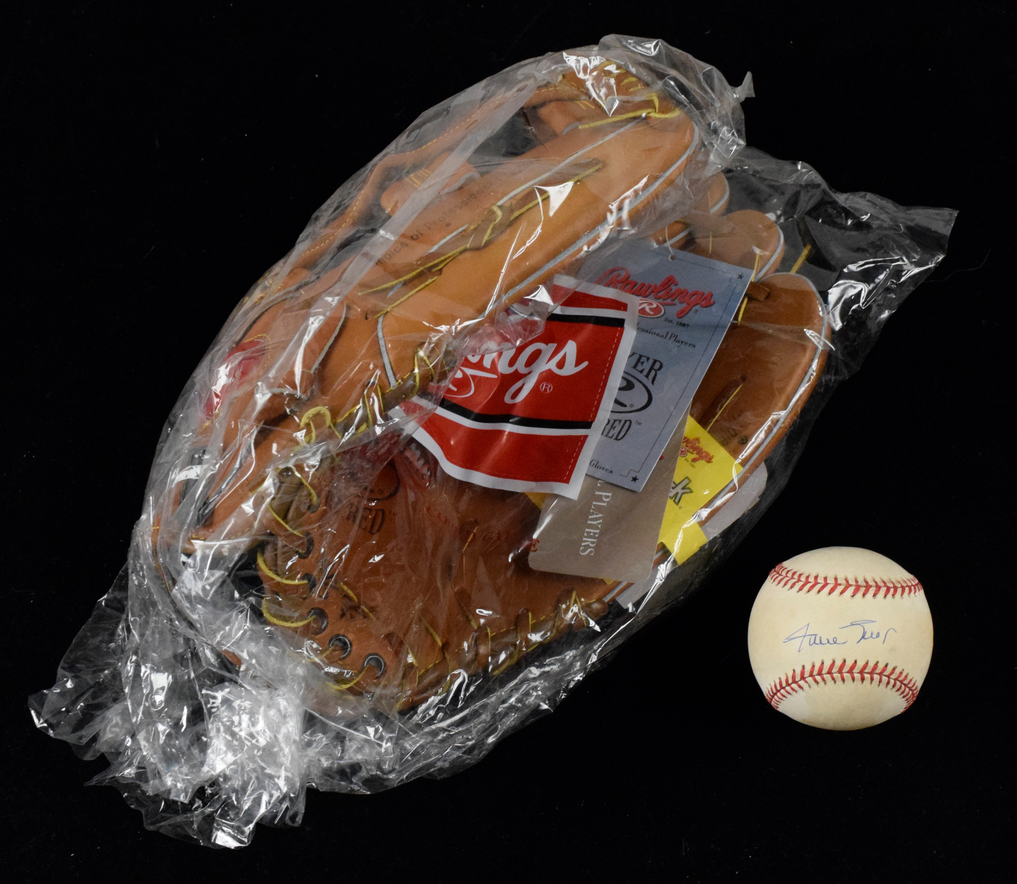 Description:Willie Mays signed baseball with Rawlings RSG1 model baseball glove (EX-NM) Rawlings model RSG1 Player Preferred glove from the Mays Collection is unused and in like new condition with original tags attached; Rawlings L.Coleman ONL baseball (mild toning) has been signed in ink rating 8 out of 10. Includes certificate of provenance from the Willie Mays Collection: EX-NM