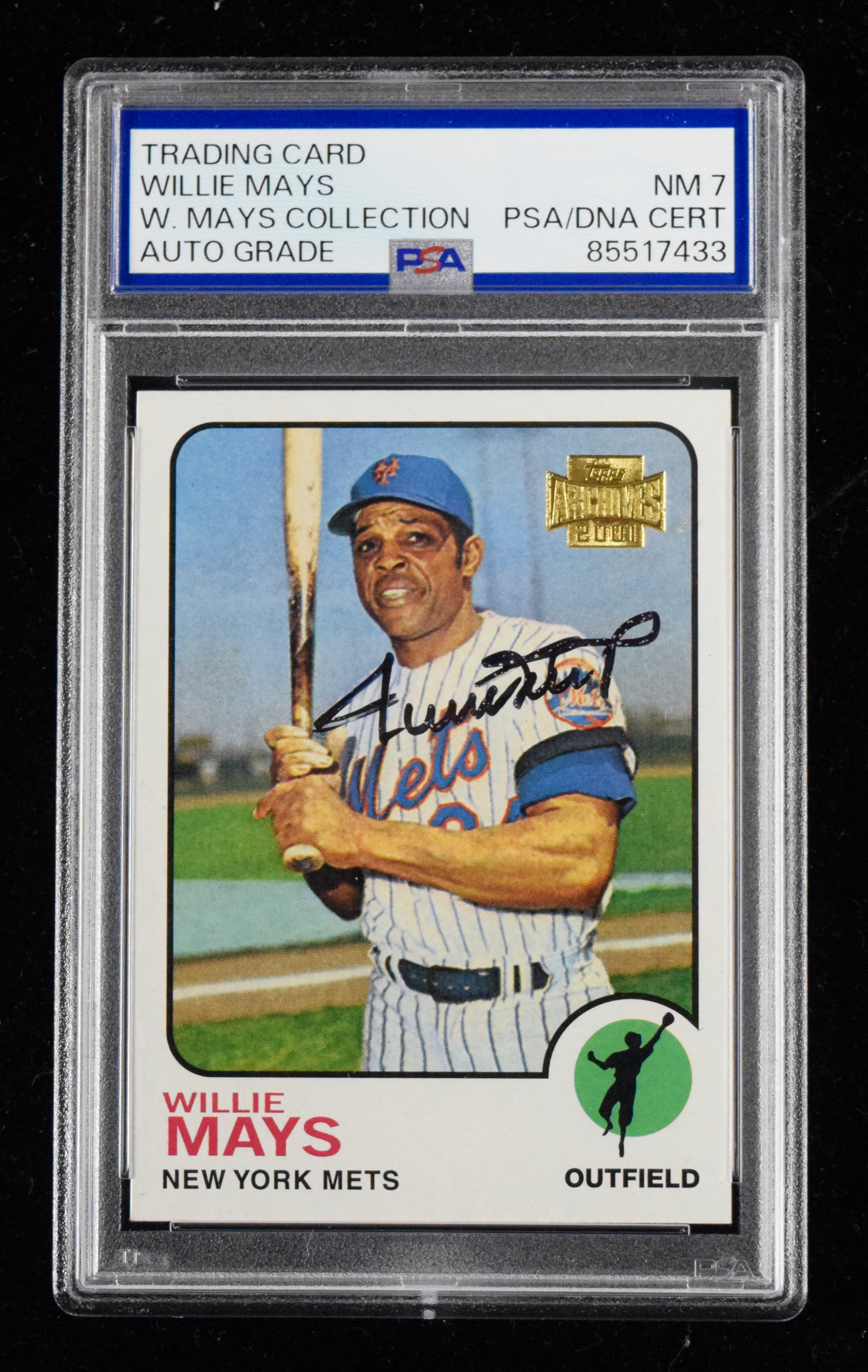 Description: Willie Mays autographed 2001 Topps Archives card (PSA/DNA NM 7) Retro card issued by Topps with autograph graded "NM 7" and "W.Mays Collection" is noted on the label: PSA/DNA NM 7