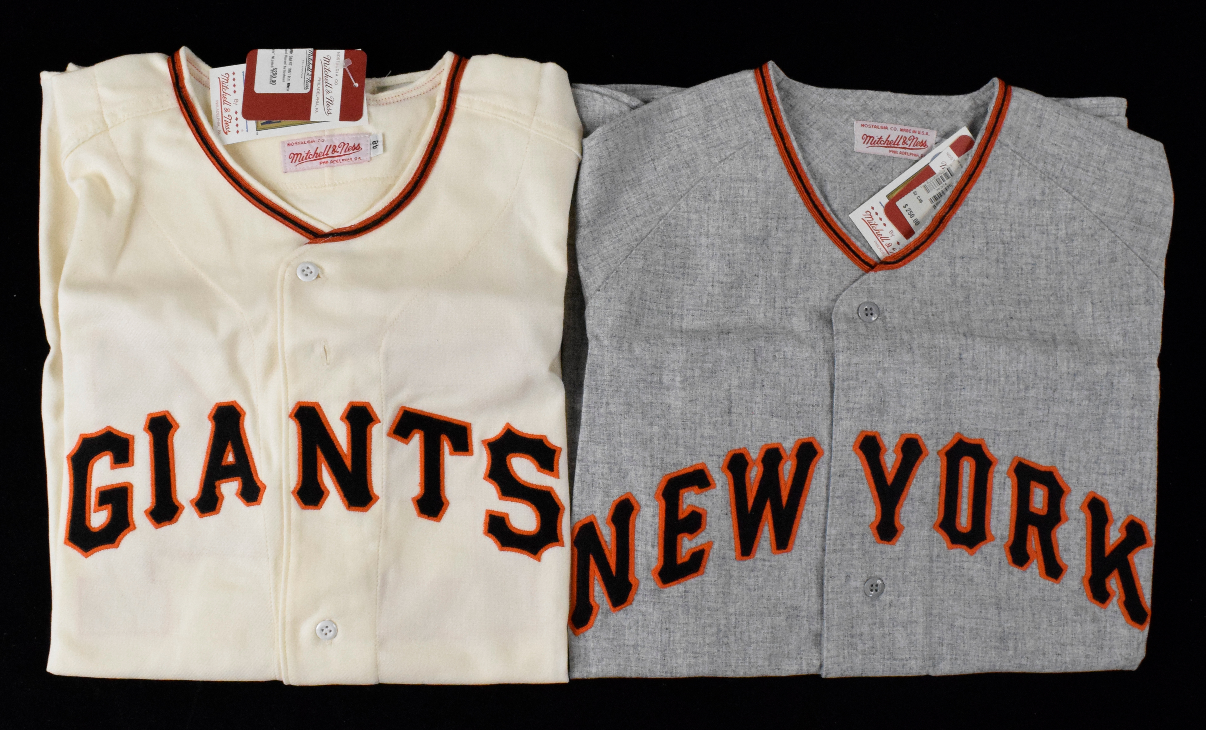 Description:Willie Mays 1951 style Giants throwback home and road Mitchell & Ness jerseys (EX/MT-NM) Pair of top of the line throwback jerseys by Mitchell & Ness done in 1951 style. Size (48) home and (46) road. Both are new with tags and have no mentionable wear aside from some wrinkles and fold lines. Includes certificate of provenance from the Willie Mays Collection: EX/MT-NM