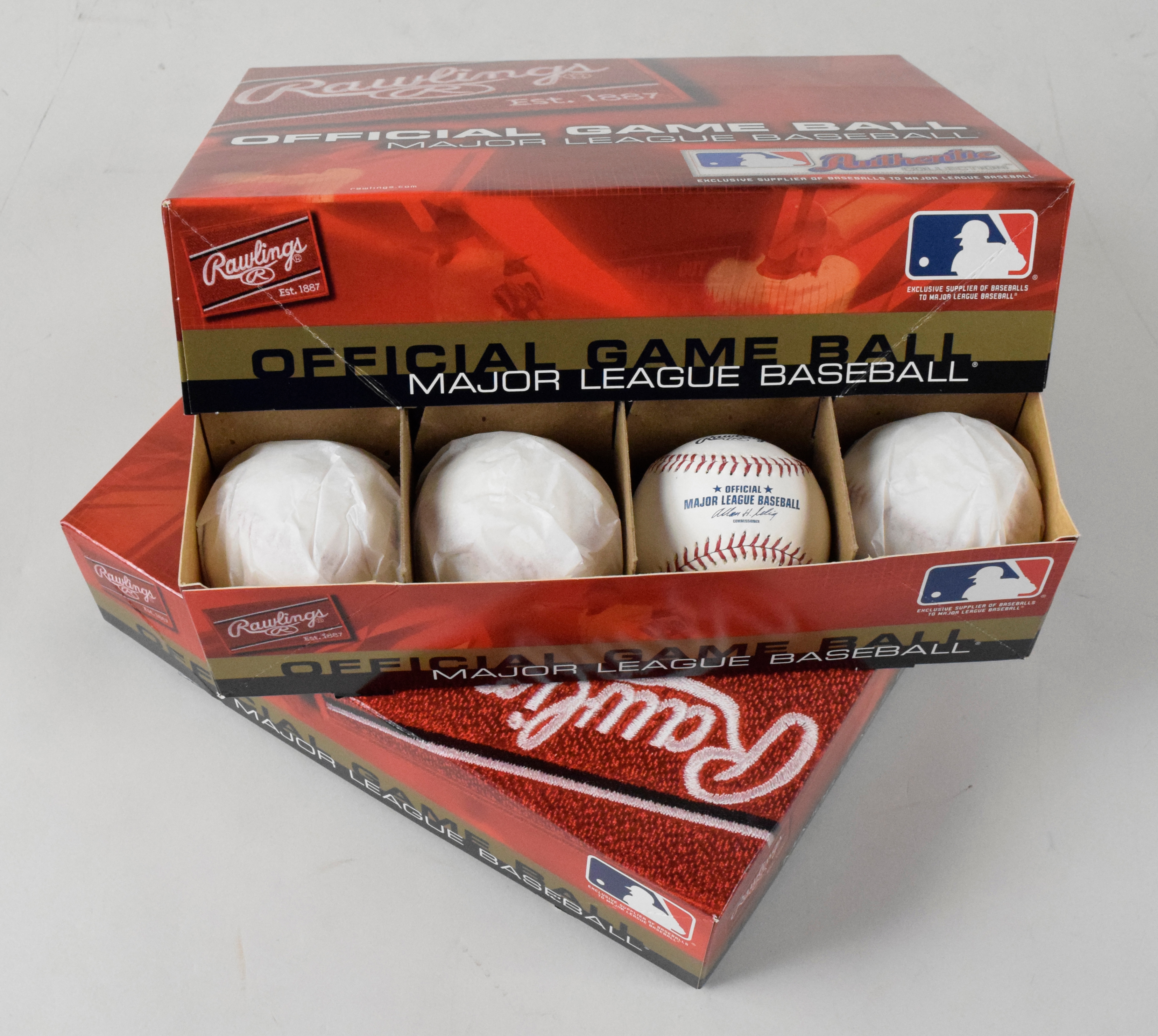 Description:Lot of (24) Rawlings B.Selig Official Major League baseballs (Avg. NM) Two dozen count boxes of Rawlings Official Major League baseballs which are unused. A spot check of several showed no toning but it is possible that a few are minimally effected. Includes certificate of provenance from the Willie Mays Collection: Avg. NM