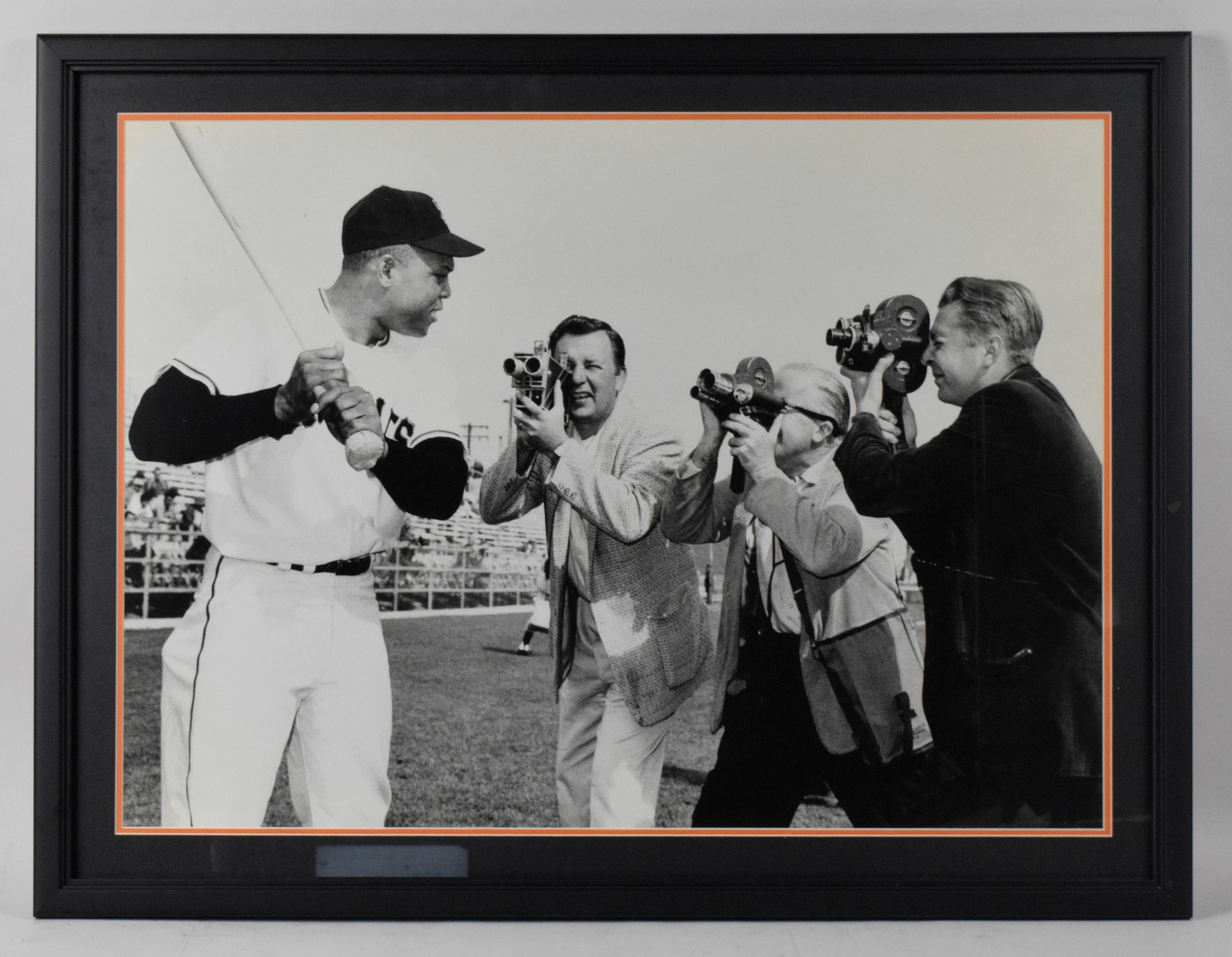 Description:Large format Willie Mays framed photograph from the Mays Collection (EX-NM) Oversized photo framed as displayed within the Mays home/office measures 32.5"x42.5" overall. Hint of light storage wear. Includes certificate of provenance from the Willie Mays Collection: EX-NM