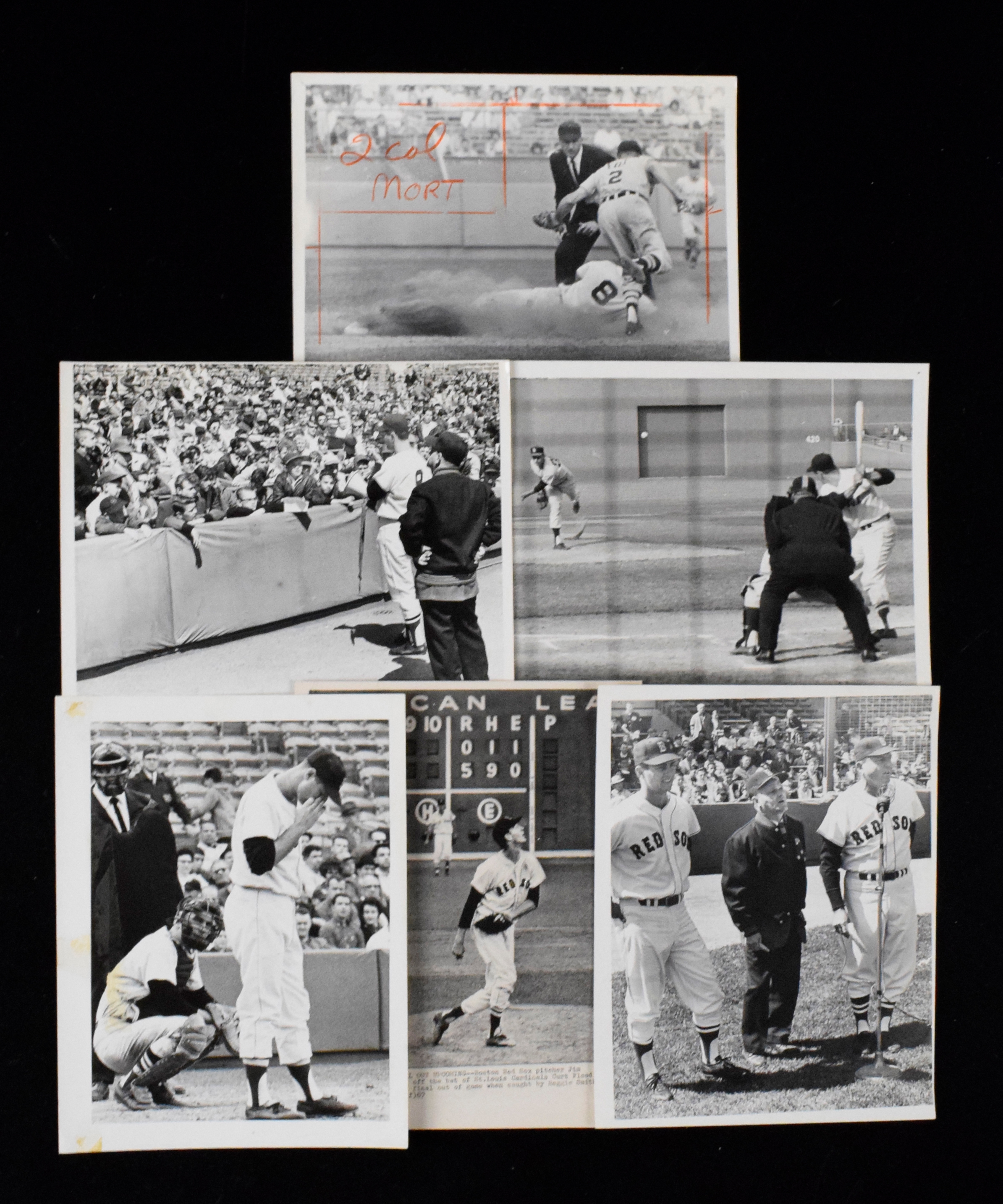 Description:Lot of (36) vintage Boston Red Sox photographs, c.1940s-70s (GD-EX/MT). Includes Carl Yastrzemski, Billy Herman, Jim Lonborg, Ken Harrelson, Tony Conigliaro, Dick Stuart, Dick Radatz, Russ Nixon, Ed Bressoud, Earl Wilson, Ray Culp, Carroll Hardy, George Scott, Joe Foy, and others. Most appear to average VG-VG/EX overall. Range: GD-EX/MT