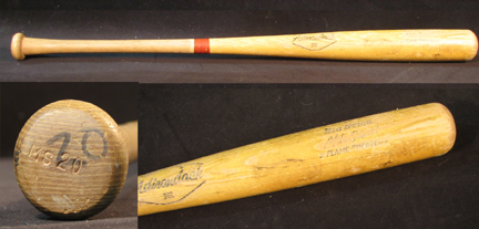 Description:Mike Schmidt Professional Model Bat. c. 1971-79. Rawlings Adirondack bat w/MS 20 impressed in the knob. Period 20 in black marker is also on the knob.Bat exhibits good usage incl. pine tar residue and rack marks.Surface finish is worn. Nice game bat from the height of Schmidts playing career:EX