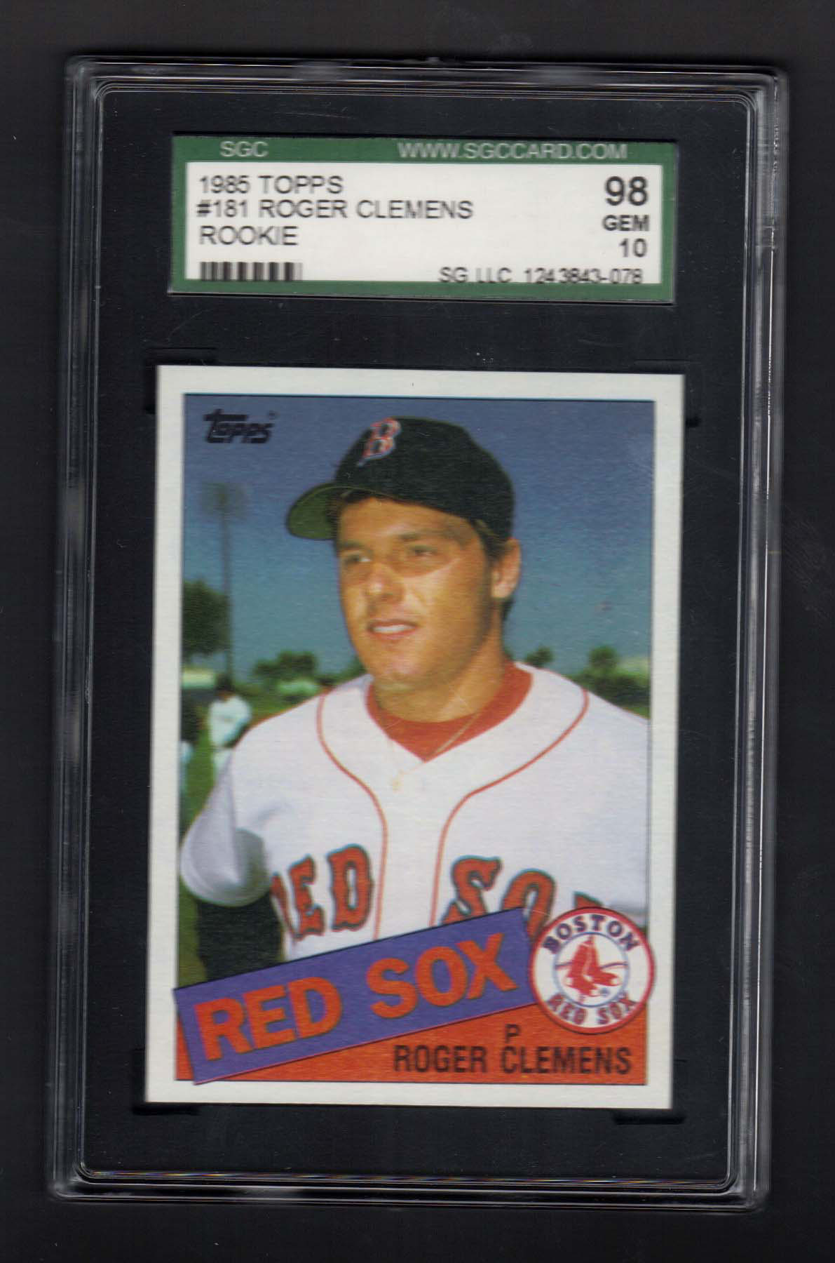 1985 Topps #181 Roger Clemens rookie card. Nicely centered with four untouched corners. Graded SGC 98 Gem Mint.