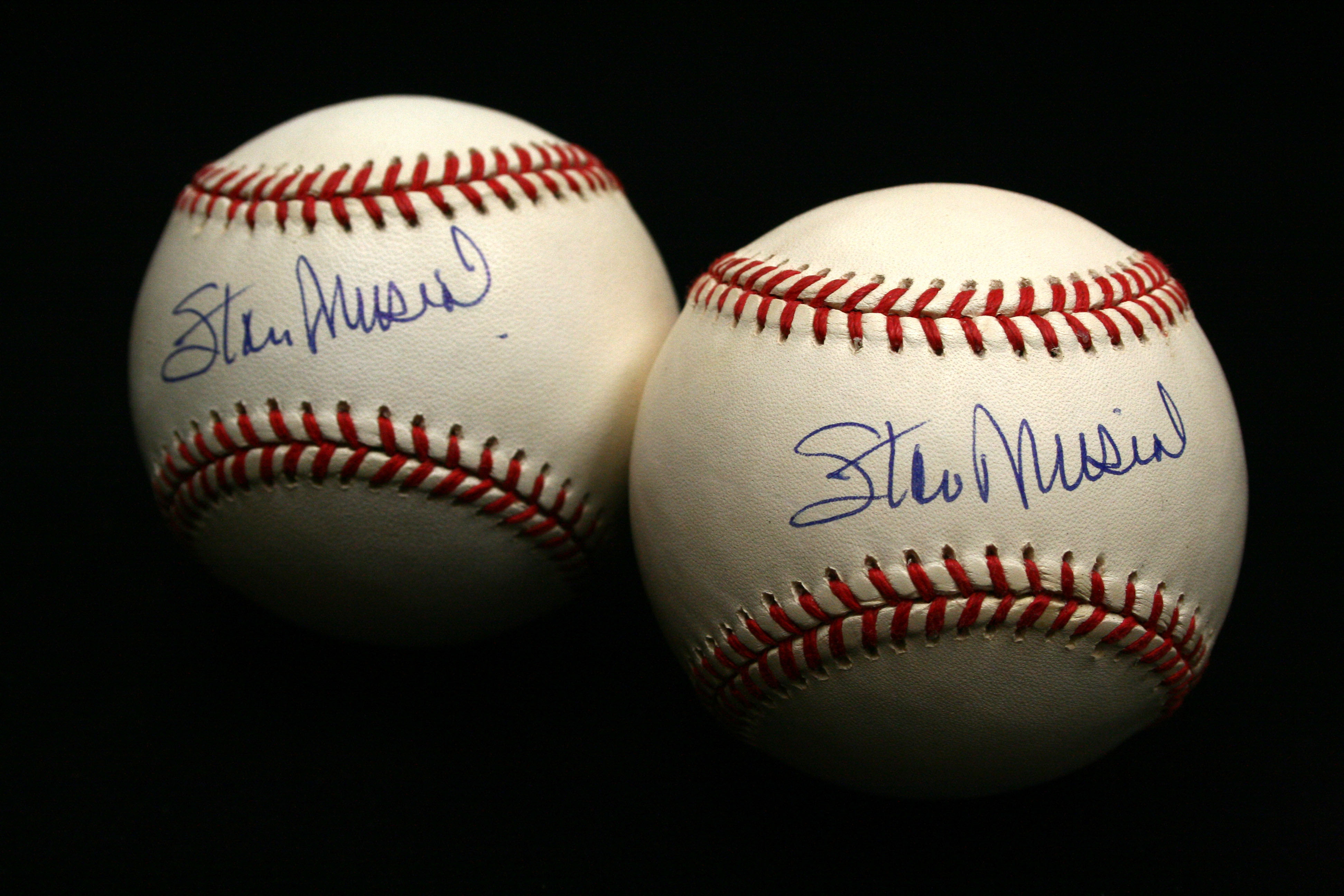 Description:Lot of (2) Stan Musial single-signed baseballs. Both are W.White NL balls signed by Musial in blue ink on the sweet spots. Signatures rate 9/10 out of 10: NM