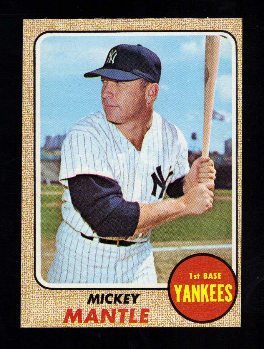 1968 Topps #280 Mickey Mantle. Exhibits light corner wear and is off-centered top to bottom and left to right: EX-EX/MT with note to centering.