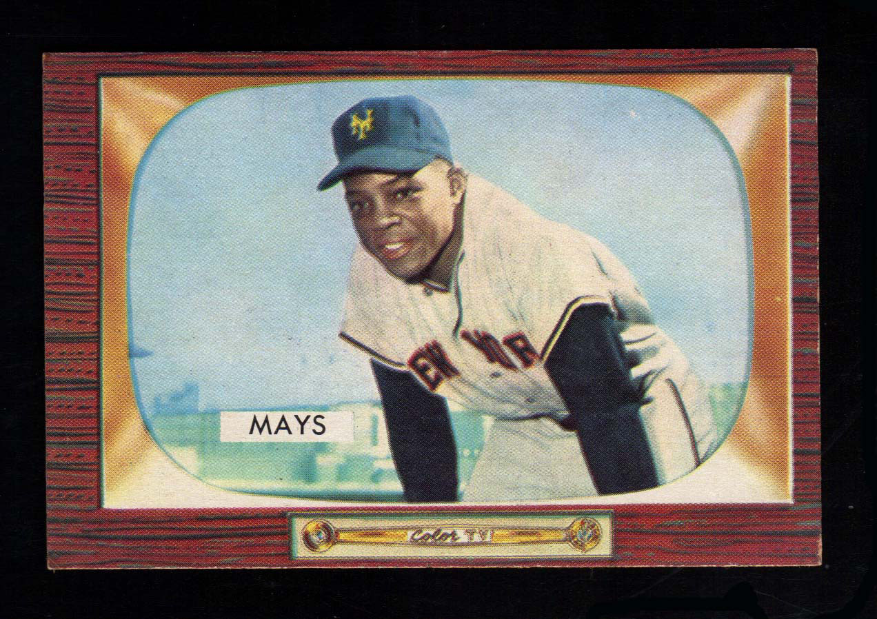 1955 Bowman #184 Willie Mays. Exhibits very minimal wear to the corners and edges. The back is slightly off-center: NM