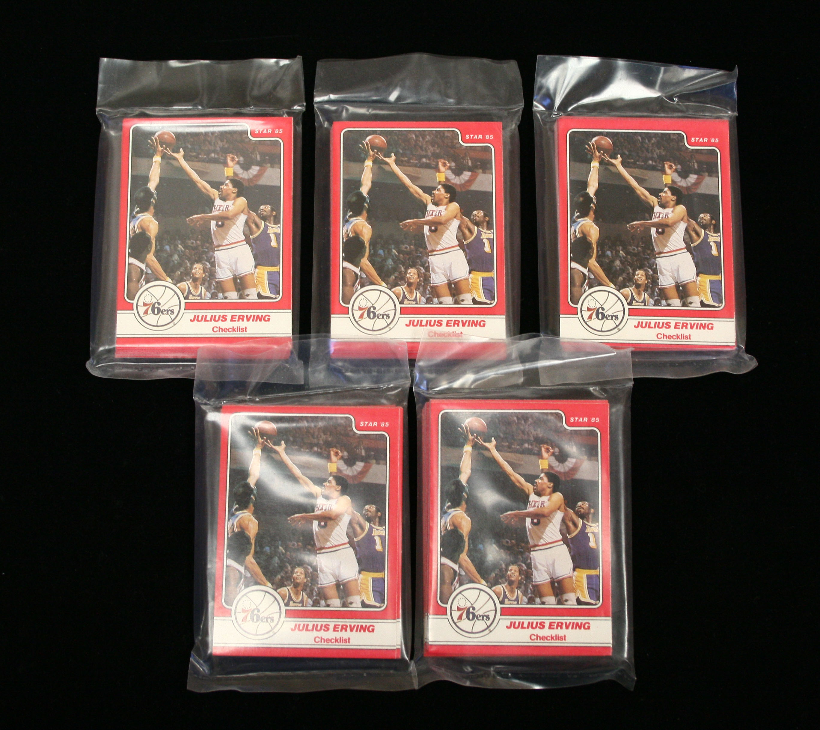 Lot of (5) 1984/85 Star Julius Erving sets. All five are factory sealed and contain (18) cards each: NM-MT