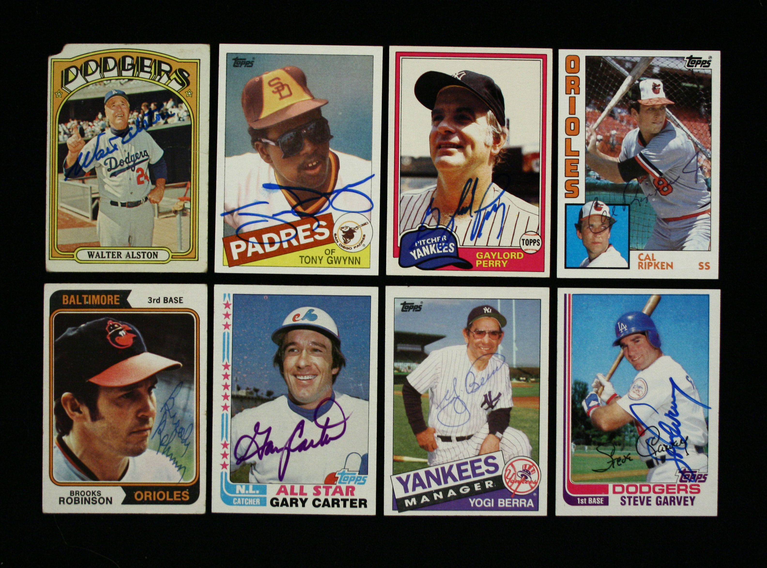 Description:Lot of (246) signed baseball cards c. 1980s. Notable signers incl. Vada Pinson, Walter Alston, Don Sutton, Cal Ripken Jr., Yogi Berra, Gary Carter, Brooks Robinson, Steve Garvey, Gaylord Perry, Tony Gwynn, Tim Raines, Earl Weaver, Orel Hershiser, Tony Perez, Ron Santo, Eddie Murray, and others. All are signed in ink or sharpie. Most cards grade EX. Range GD-NM