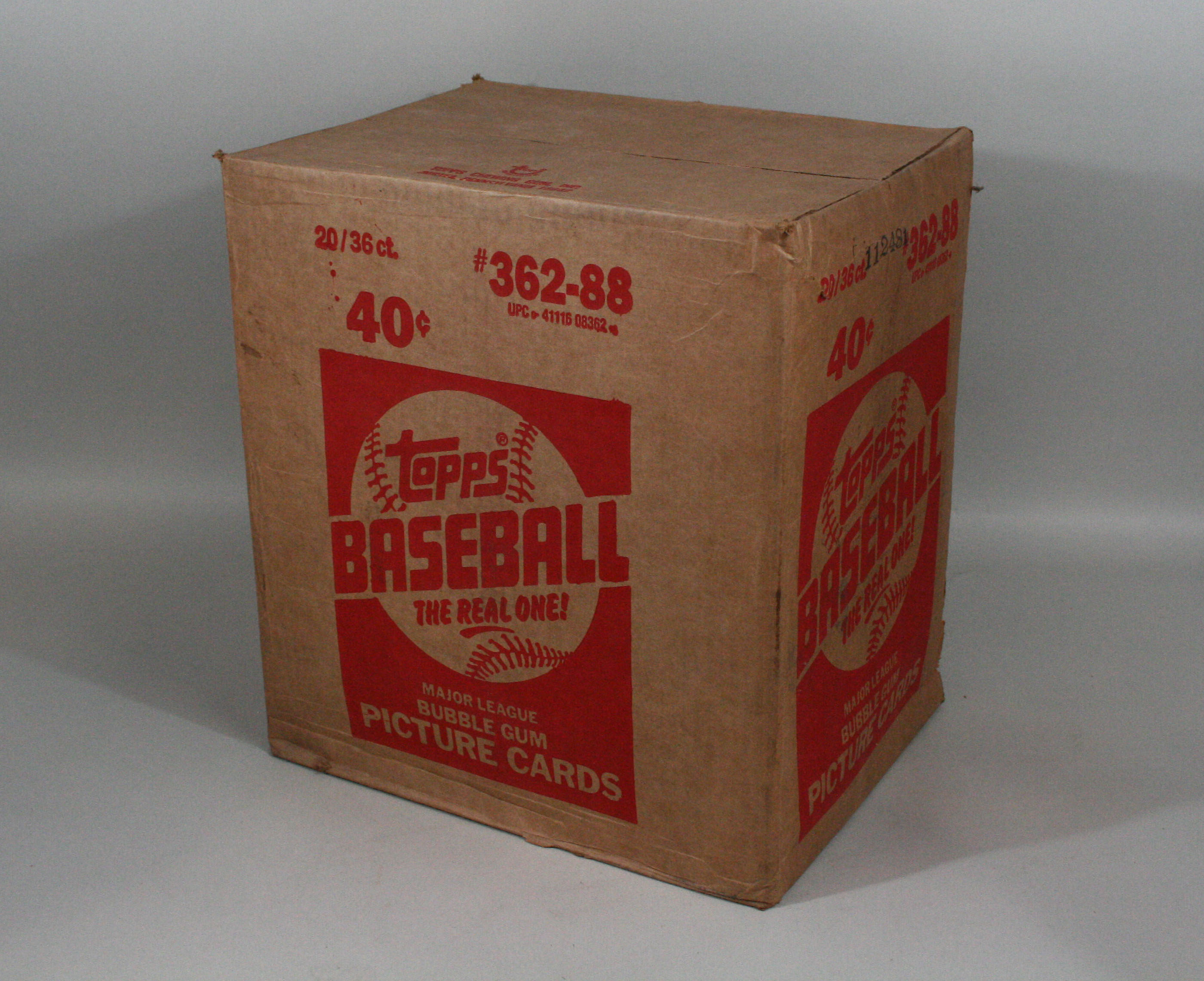 1988 Topps Baseball wax case. Factory sealed case containing (20) 36-count wax boxes. Exhibits light handling wear: EX/MT