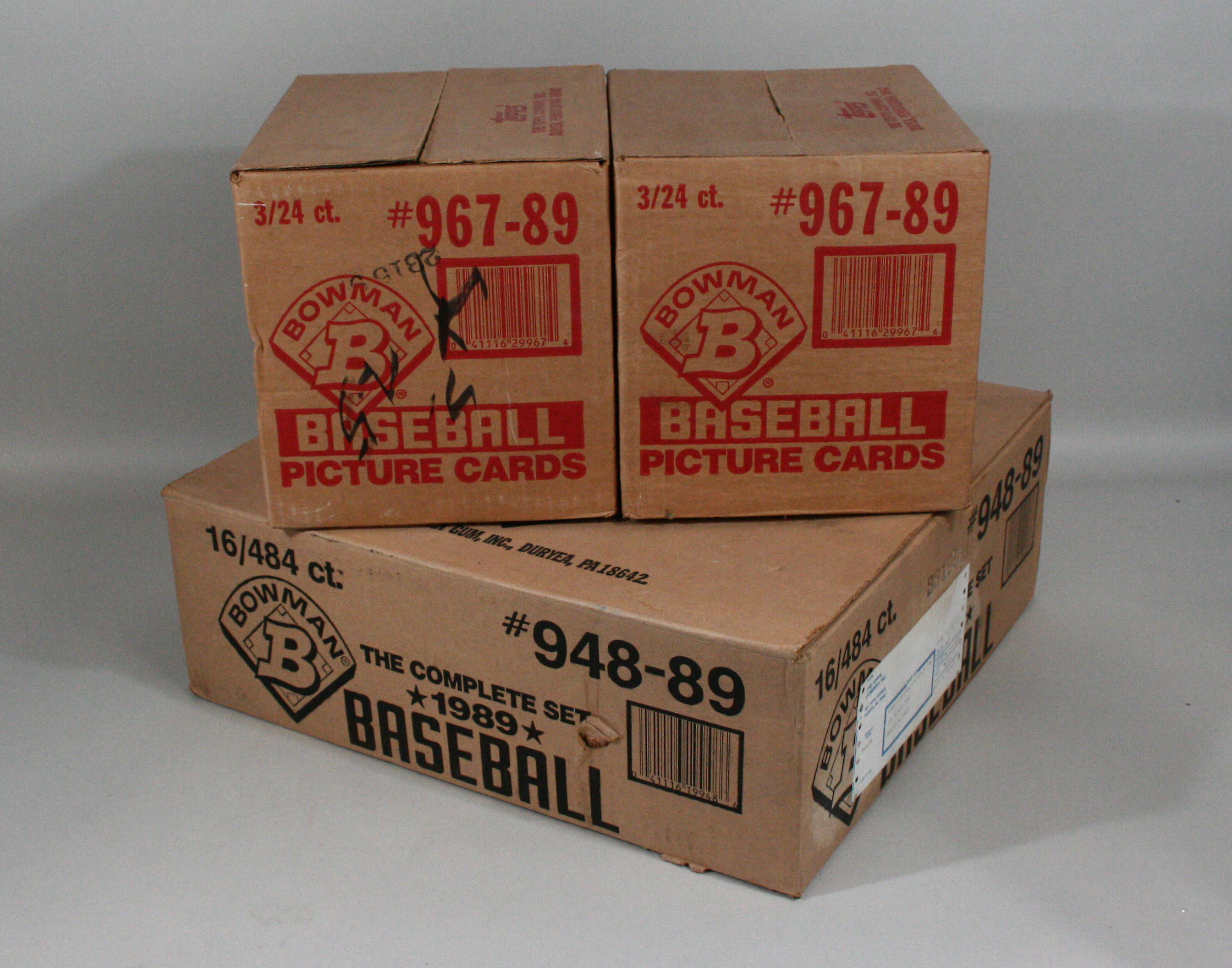 Description:Lot of (3) 1989 Bowman Baseball factory sealed cases. Incl. a factory sealed set case which contains (16) sets; and (2) factory sealed rack pack cases which each contain (3) 24-count rack pack boxes: EX/MT-NM
