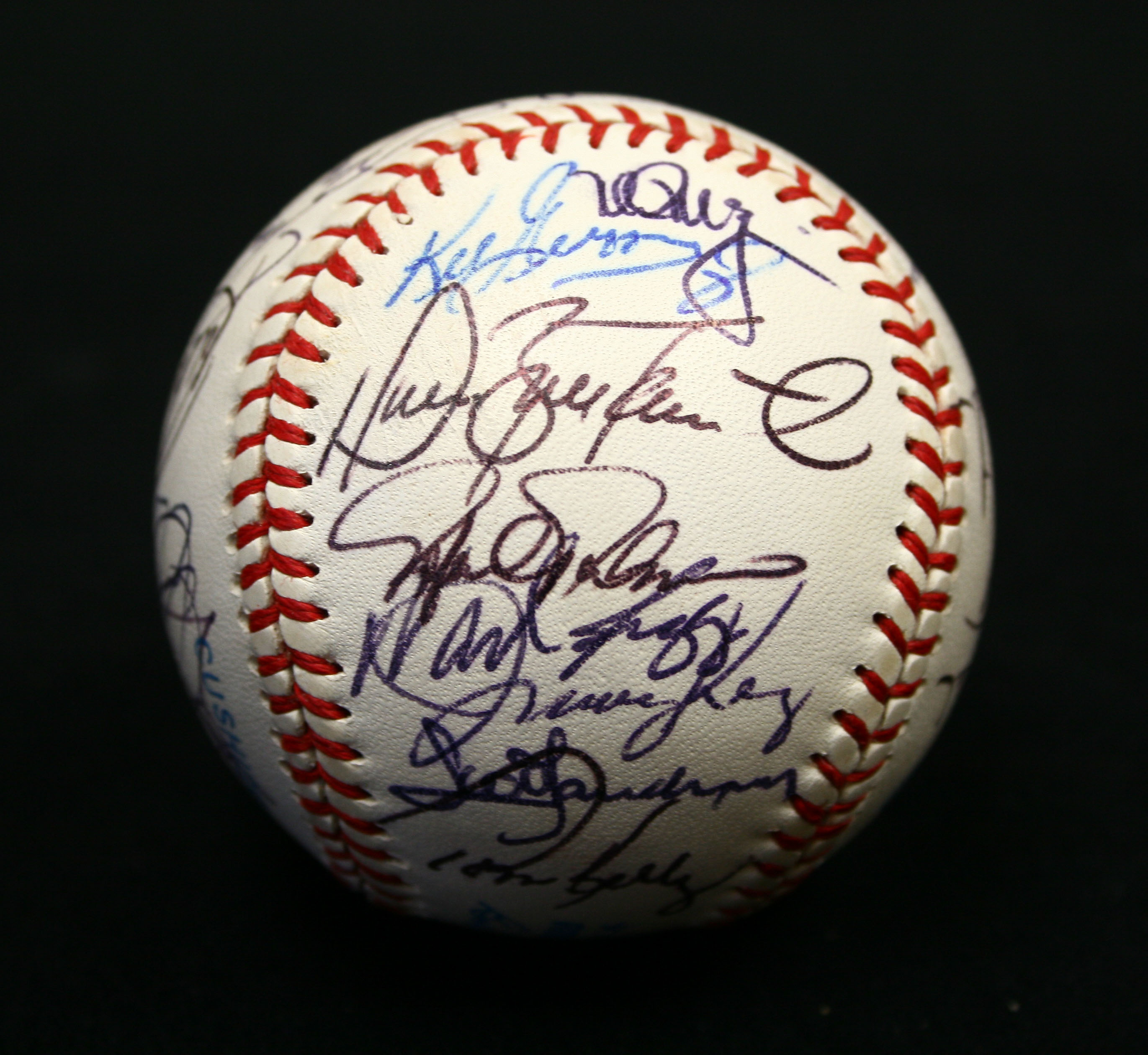 Description:1991 American League All-Star team-signed baseball. B.Brown AL ball signed by (29) members of the team including Cal Ripken Jr., Carlton Fisk, Mark McGwire, Ken Griffey Jr., Wade Boggs, Dennis Eckersley, Joe Carter, Roger Clemens, Kirby Puckett, Rafael Palmiero, Tony LaRussa, Roberto Alomar, and others. Signatures rate 9/10 out of 10: NM